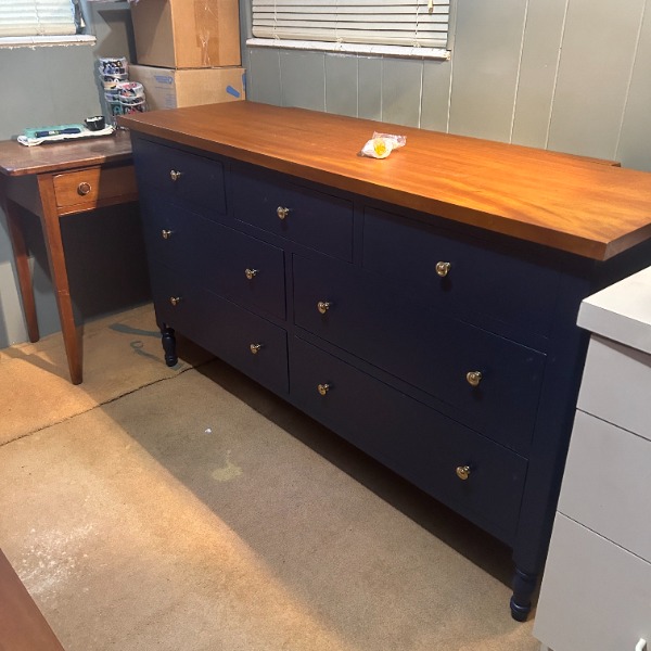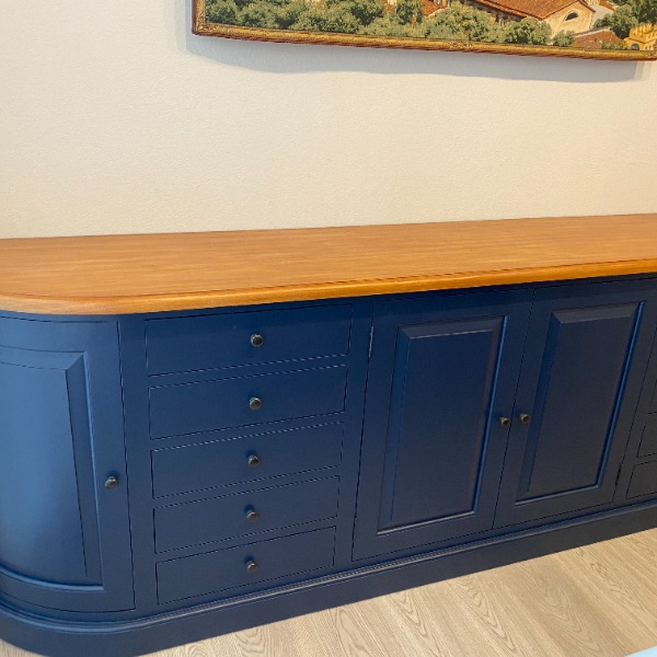 I love the 9' navy buffet. It is a solid, well made piece. I appreciate them sending additional hardware, stain and oil with cloth to care for it. I'm really impressed with the workmanship. It's definitely an heirloom piece. Thank you for the great customer service too. Every time I emailed for additional information or phone called, I always got a courteous and informative response. The delivery people were professional and took care of my home. They were concerned with causing any damage to my home. They took their time and thoughtfully troubleshooted how to bring such a heavy item into my house. They removed all the packaging material and assembled the buffet before leaving. Their small talk was kind and thoughtful. Thank you for the wonderful experience throughout the whole process. It was worth the wait. I love it.