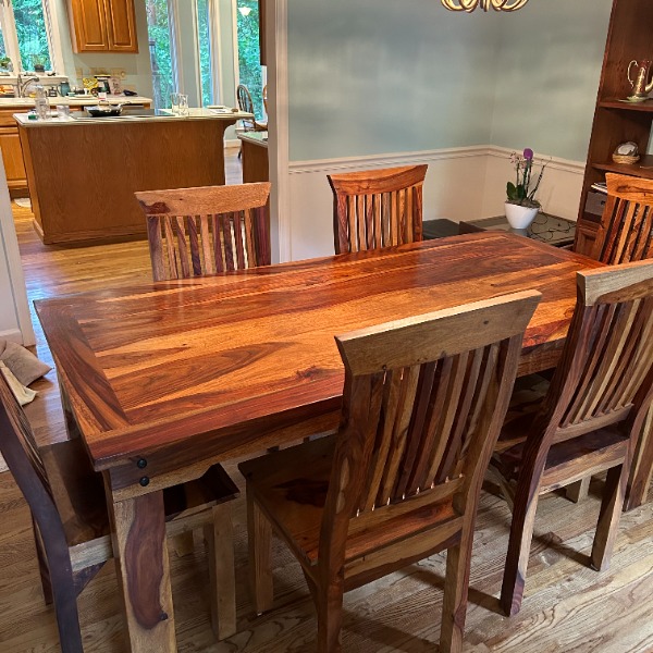 The purchasing experience was excellent. Regular updates were provided during the manufacturing and delivery process which kept us informed and at ease.The delivery was well coordinated and courteous. The quality of the solid wood dining room set exceeded our expectations. Thank you SLC.