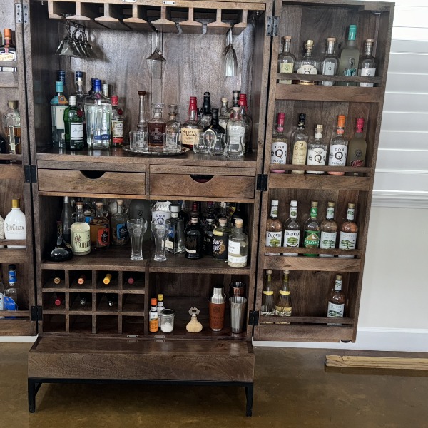 Beautiful workmanship and very practical too. Looks great in our home and holds a surprising number of glasses and bottles!