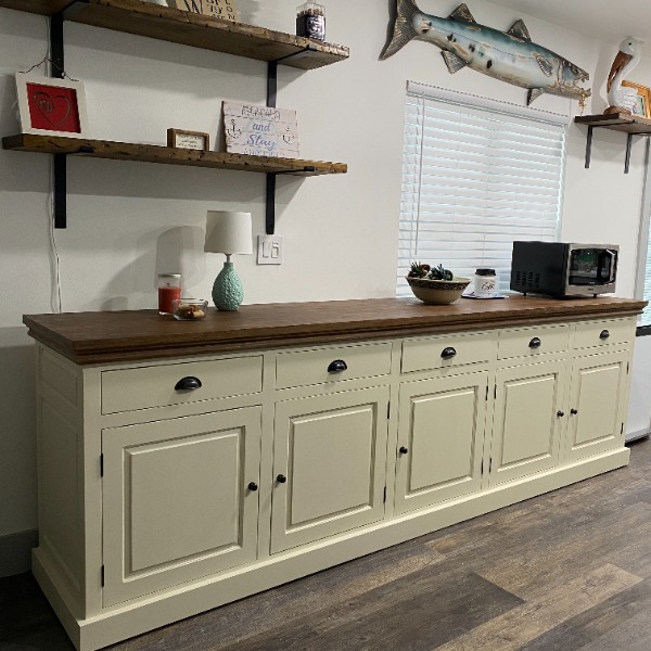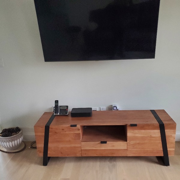 Beautiful sideboard. Just what we wanted. Very well made. Definitely worth the wait to have it made to order. We enjoyed the email up-dates showing the build progress. The delivery by “XPO Logistics”and the set-up process by “Boards under my feet” were flawless. They coordinated the two step process so the set-up guys got here soon after the delivery and carefully unwrapped and placed our beautiful sideboard in our dining room. I have no suggestions for how you could improve. You have already worked out a great process. We are obviously very happy customers. Thank you for a job well done. Don & Sue