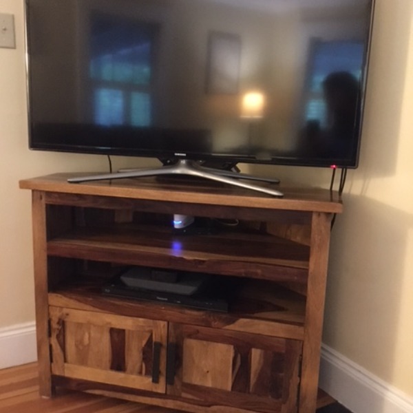 We were very impressed at the craftsmanship of our corner TV stand and think the varied colors in the grain of the hardwood is beautiful. A very beautiful piece that will be a conversation starter as it is so unique.