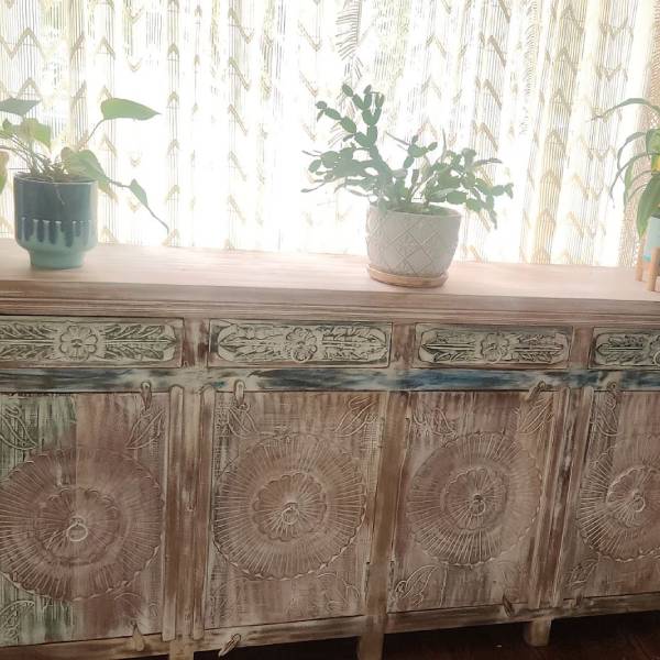 The sideboard is just as shown on your website. It is unique, well made and beautiful. Being able to track the shipment from India to New York was a nice feature. The delivery company, The Box Company, were excellent. They carefully unpacked and placed the sideboard exactly as instructed. They were exceptional.