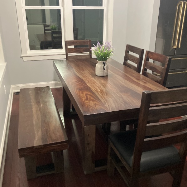My dining set was so worth the wait. Excellent craftsmanship. It is beautiful. Customer service was spectacular, there was a little delay finding a shipping company to handle the white glove portion. Adam was in constant contact, updating me. I am completely satisfied with Sierra Living Concepts and would most definitely do business with them in the future.