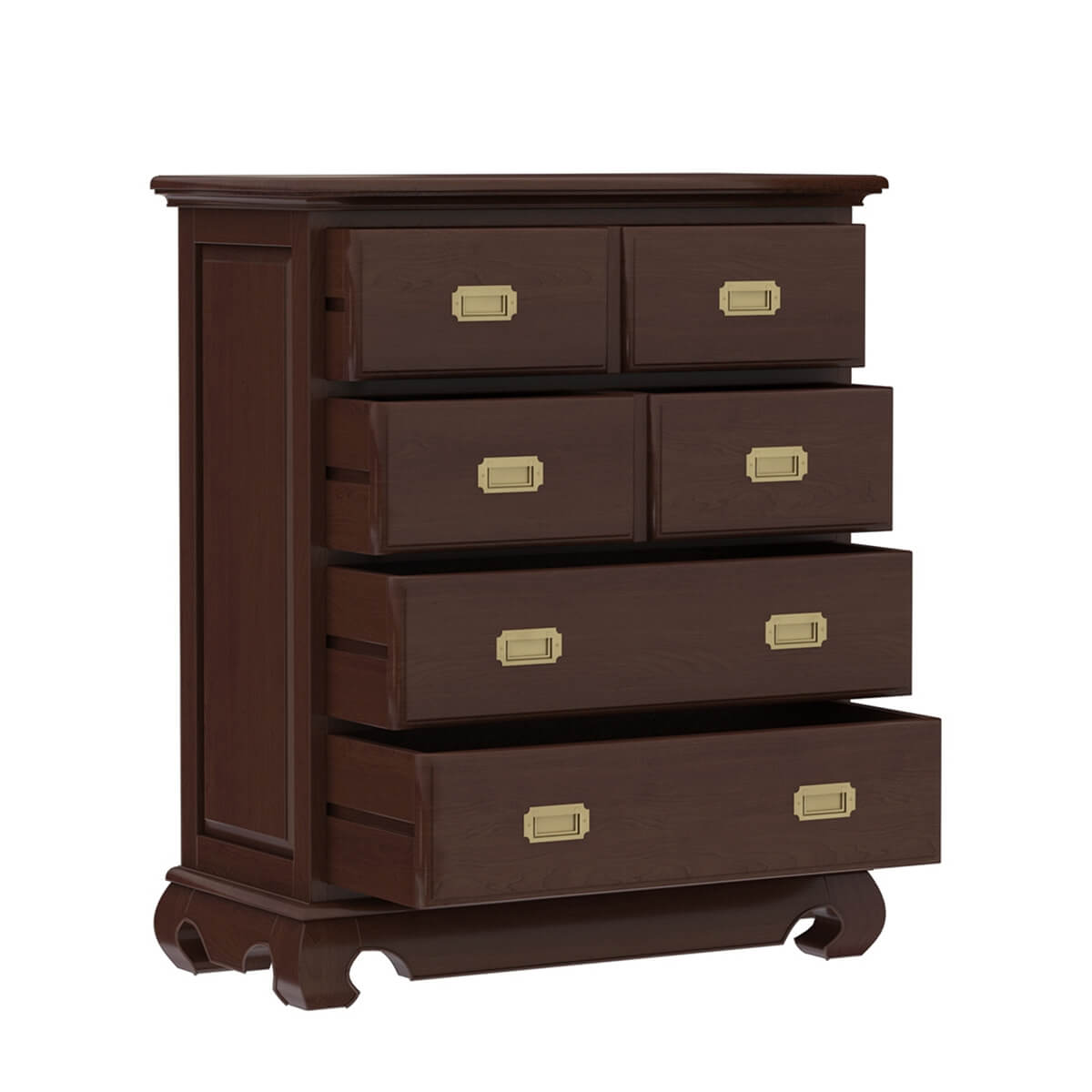 Looking for a dresser that is luxe, stately, and elegant? Search no further than our Oraibi Mahogany Wood Bedroom Tall Dresser With 6 Drawers!