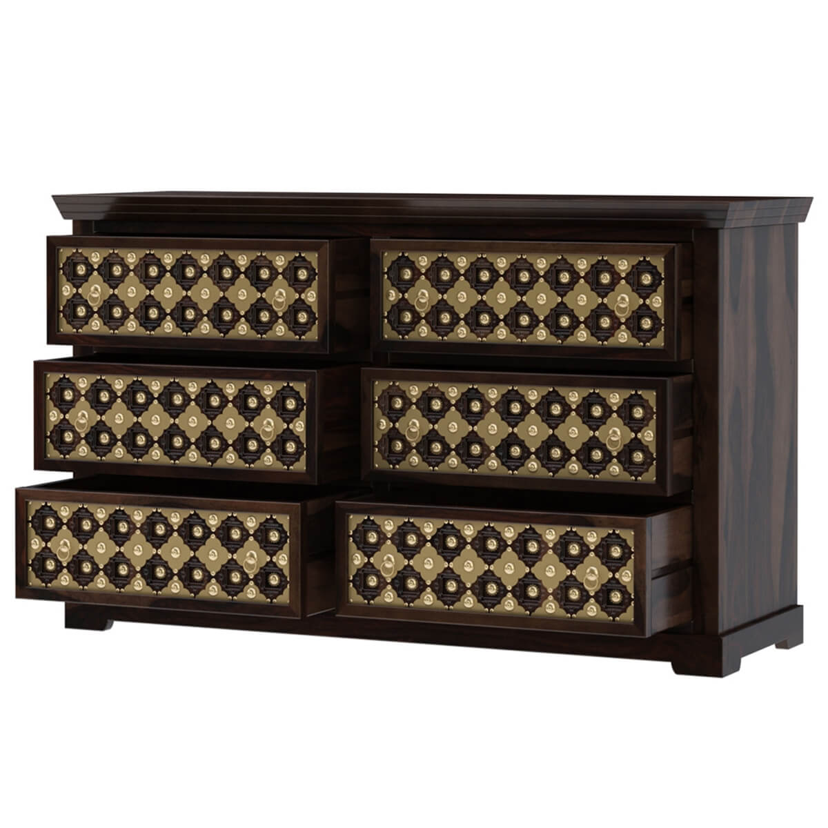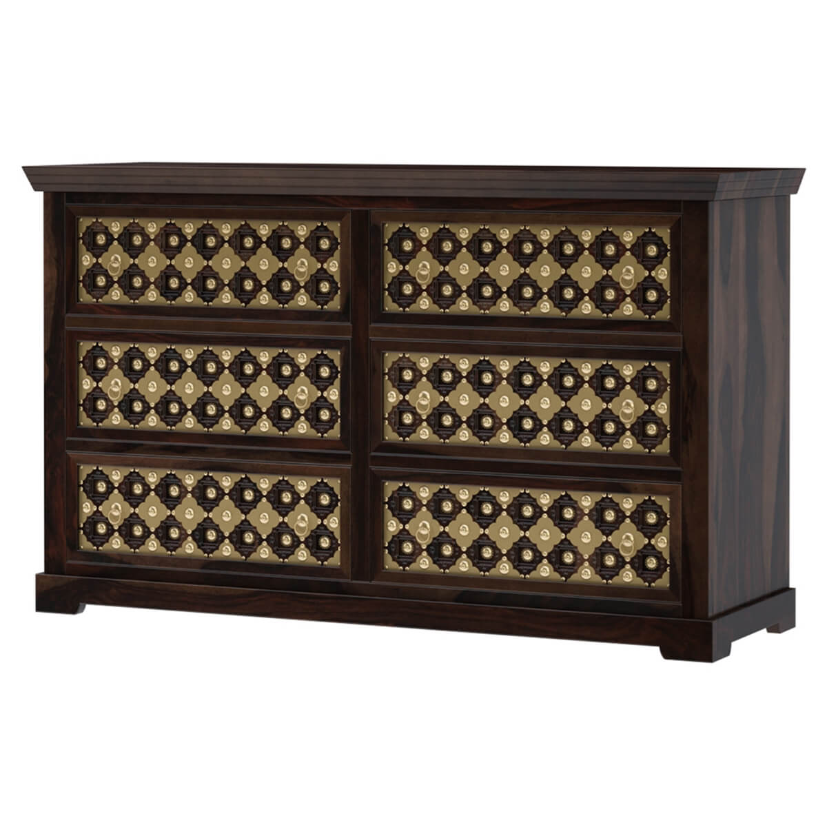 Bring a spirited element of glamour and prestige to your home with our Diamond Empire Solid Wood Brass Inlay 6 Drawer Double Dresser.
