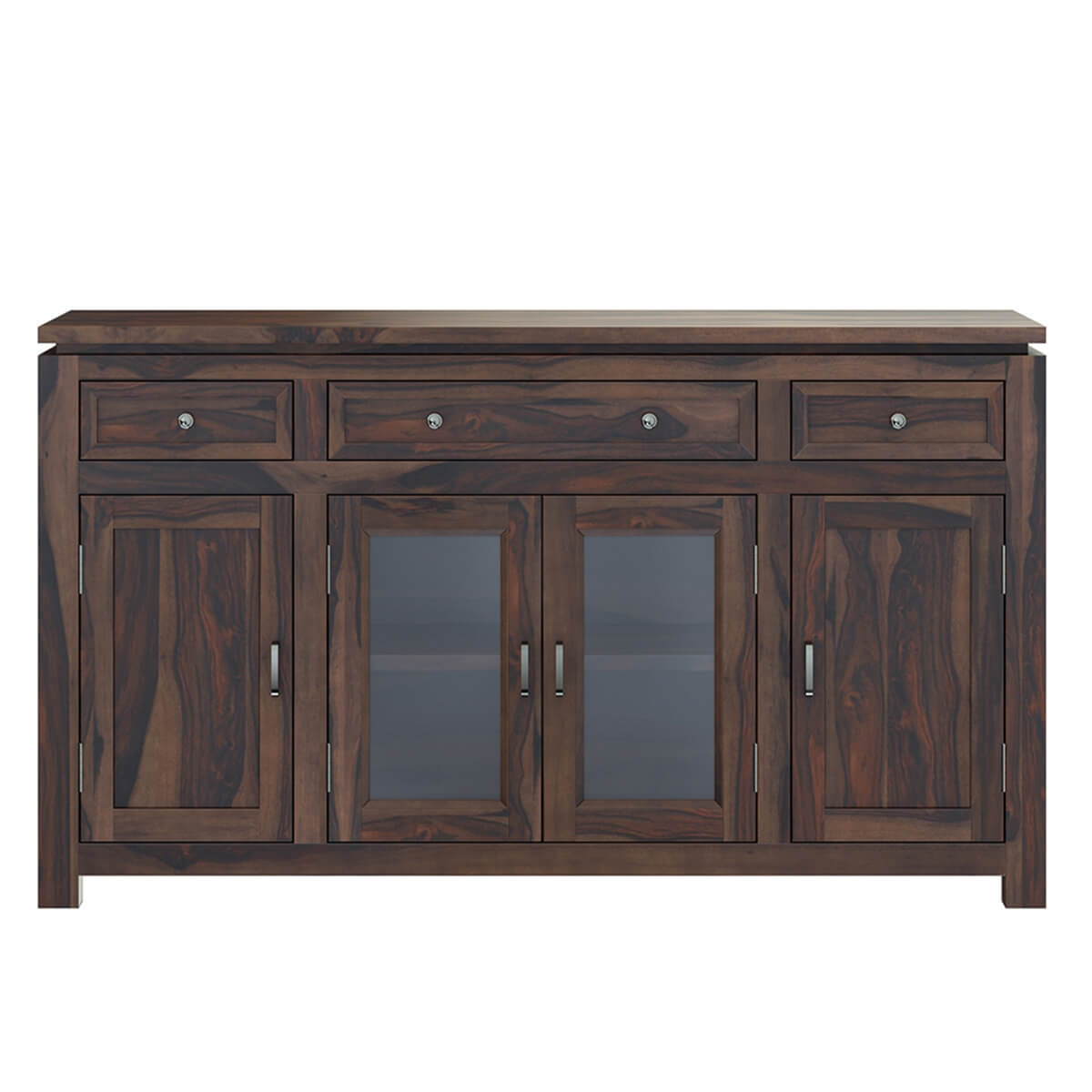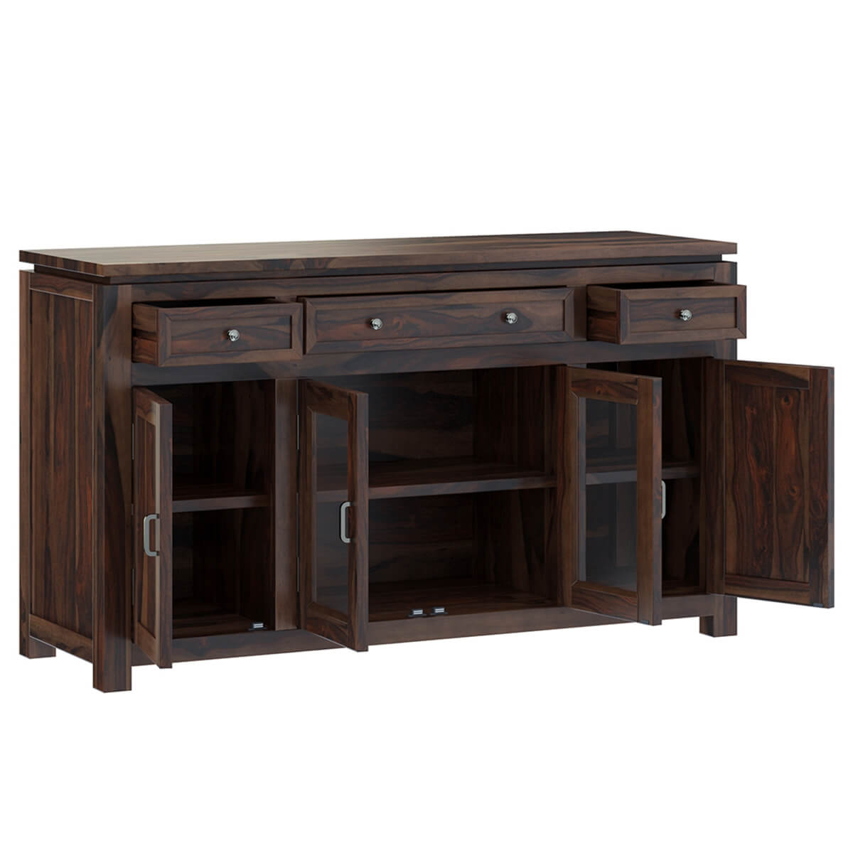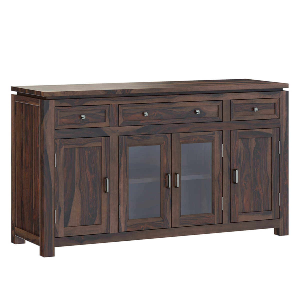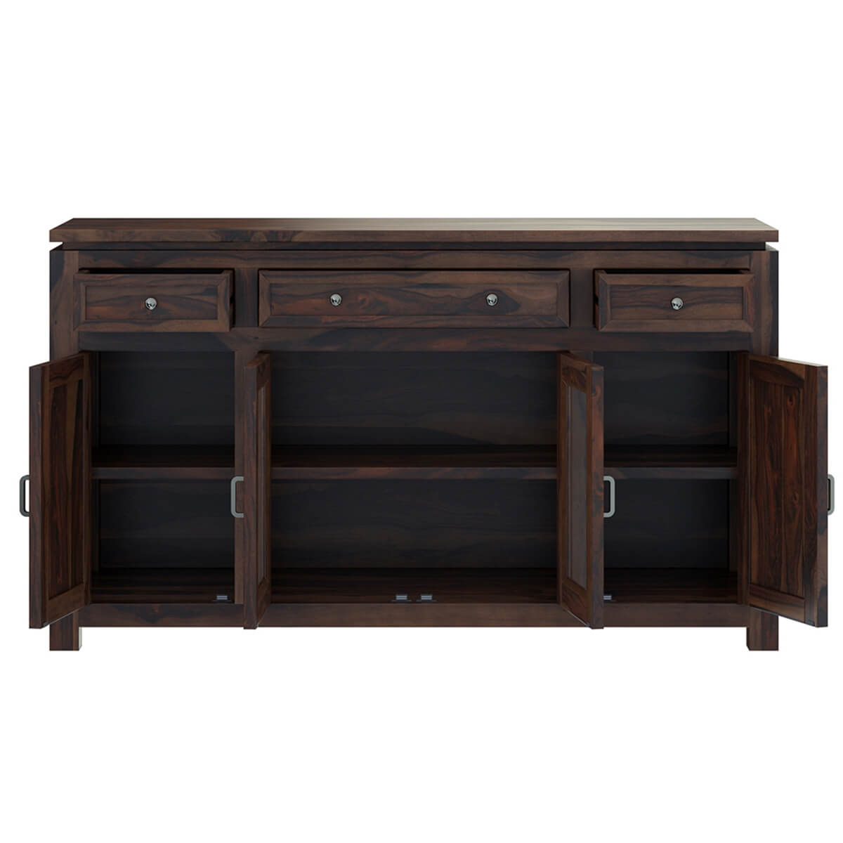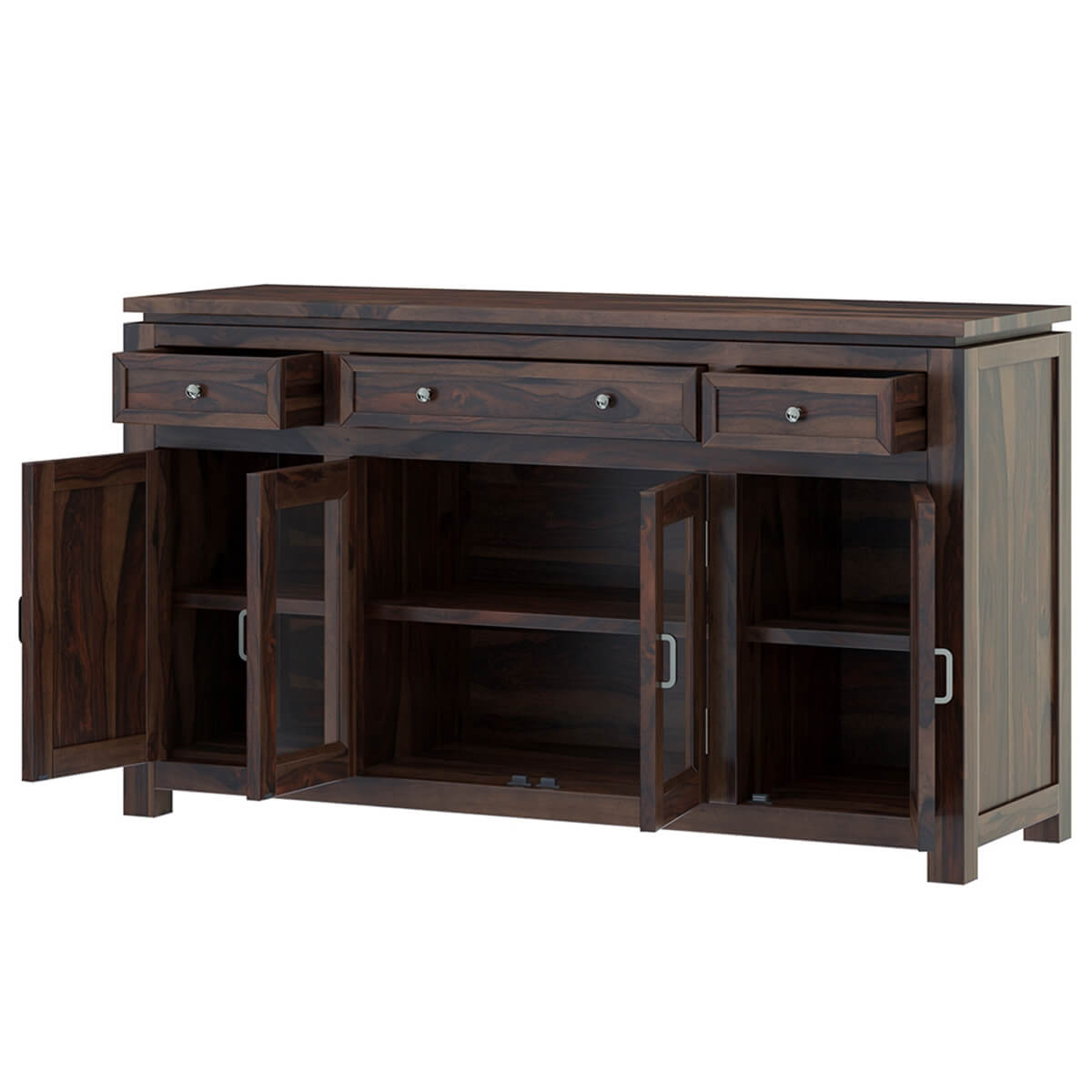 Elegant and stylish, our Sela Classic Rustic Solid Wood 3 Drawer Large Buffet Sideboard Cabinet is a modern take on skillfully made dining furniture. Urban outlook, streamlined silhouette, and graceful in-lay are some of the best features this long buffet cabinet offers. Entirely handcrafted from Solid Wood, this large sideboard boasts its visually striking finish that runs all over its body and brings out the natural aura and texture of the Solid Wood.