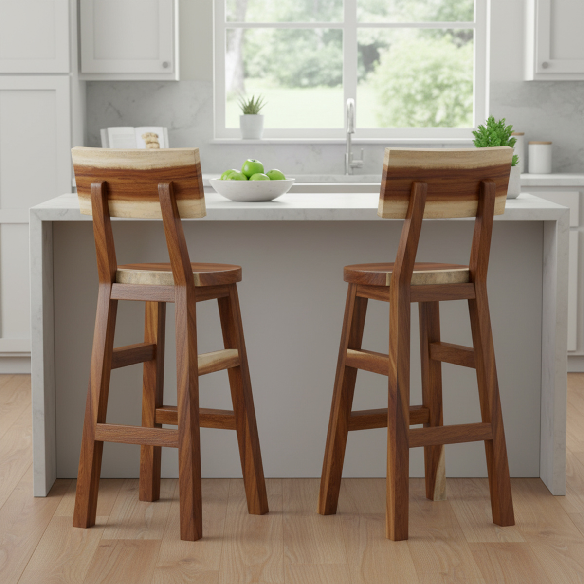 It's nearly impossible not to fall in love with this classic Bergamo Modern Rustic Solid Wood Tall Bar Stool Set, and the sophisticated appeal it brings. Incredibly designed with Solid Wood, this rustic bar stool combines style with form and function that not only elevates its own standards but also of its surroundings. Its subtle design and hand-applied finish are enough to stand out in your collection, making it a timeless addition to your bar setup. 44-inches tall, it stands freely on its splayed legs and boasts its sturdy round shape seat that contrasts with its clean-lined silhouette. Whether it's the rectangular backrest it offers or its built-in footrest at its front and back, it's evident that its design has taken great care of your comfort levels. Its rustic warm appearance combined with its aesthetic design, thus, plays a significant role in ensuring the best results for your home bar setup. An inseparable part of our Bergamo Rustic Solid Wood Bar Set, this ergonomic bar stool arrives in a set of two. Promising premium quality, it is mindfully constructed to withstand the test of time and to become a multi-generational item that lasts for years to come.