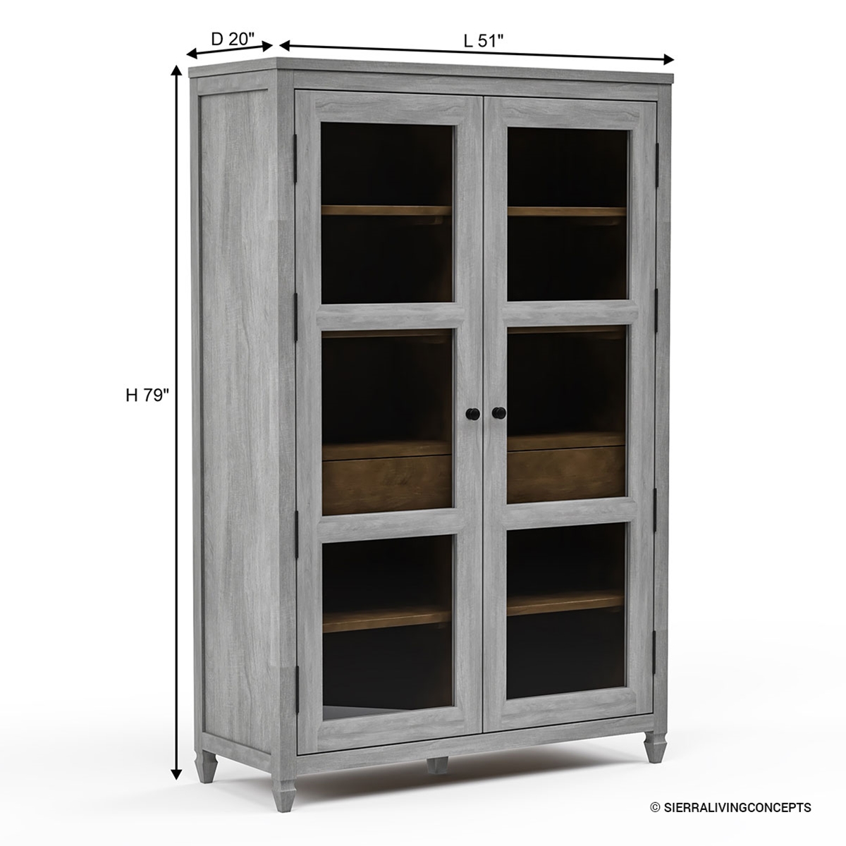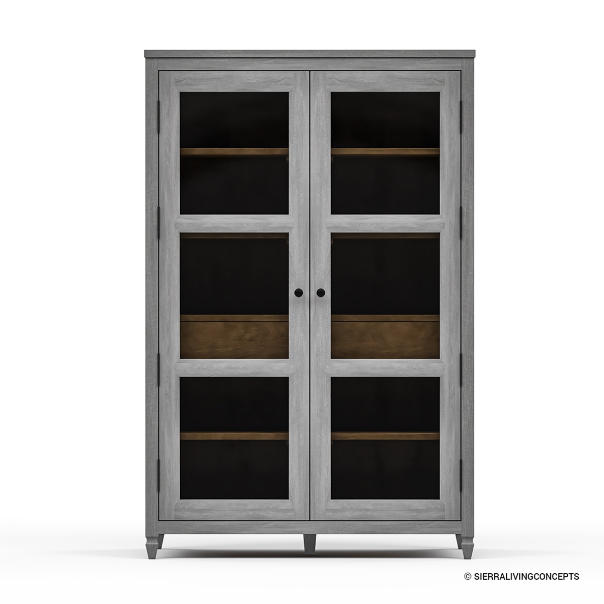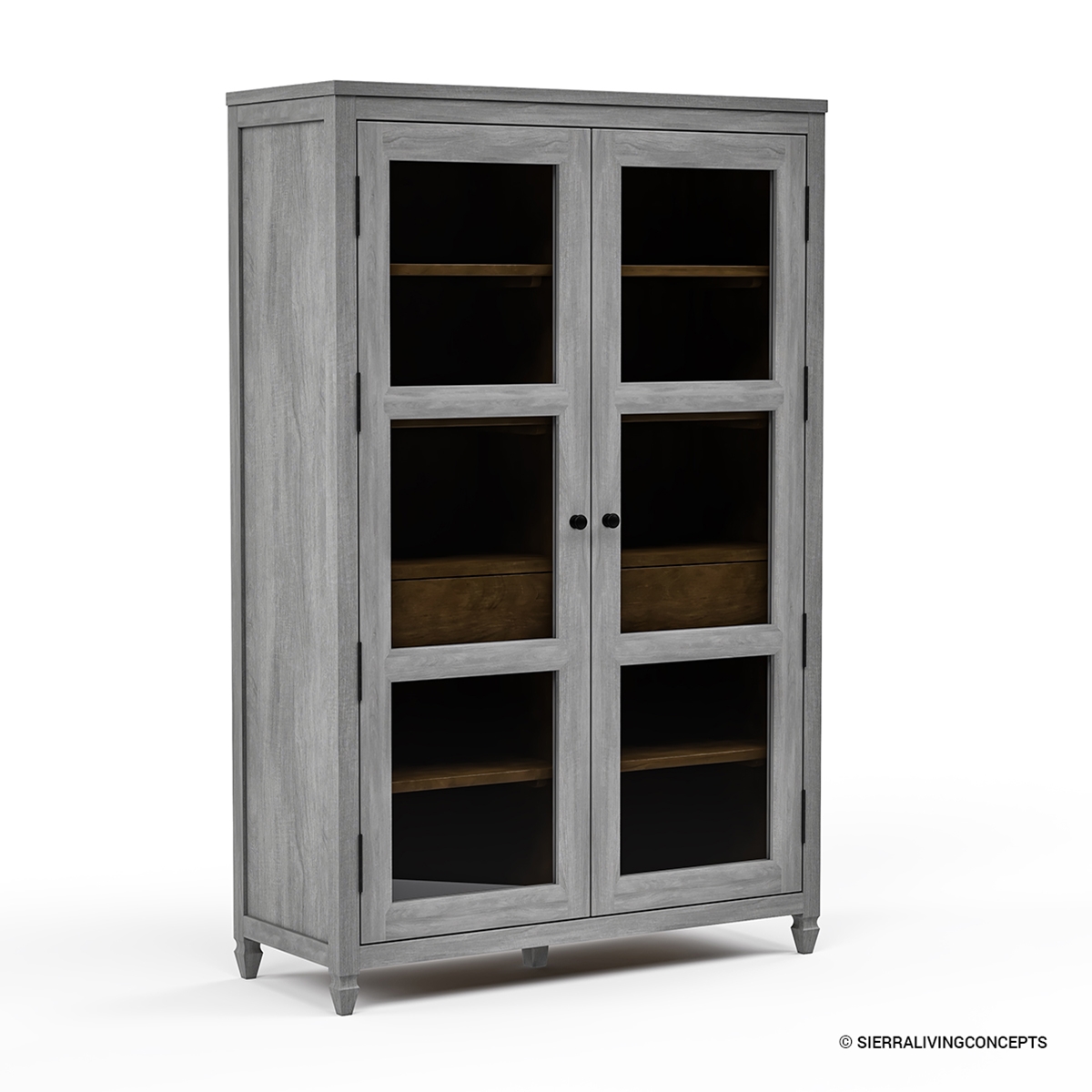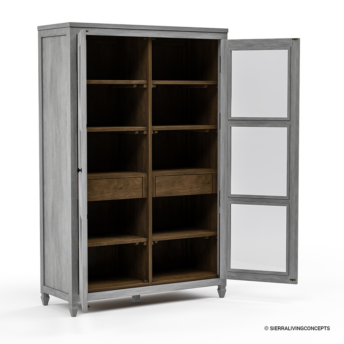 In addition to its immense functionality, this heirloom piece will be an equally gorgeous visual statement. The rustic gray outlook elevates its beauty standards, while the brown finished interiors make a great contrast with the outer display, creating a lasting appeal. The clean lines and bold silhouette of the cabinet integrates with any dining space, bonding instantly with a variety of interior styles. This timeless cabinet stands off the floor on four Adam-style feet that complete its design and assures its stability.
