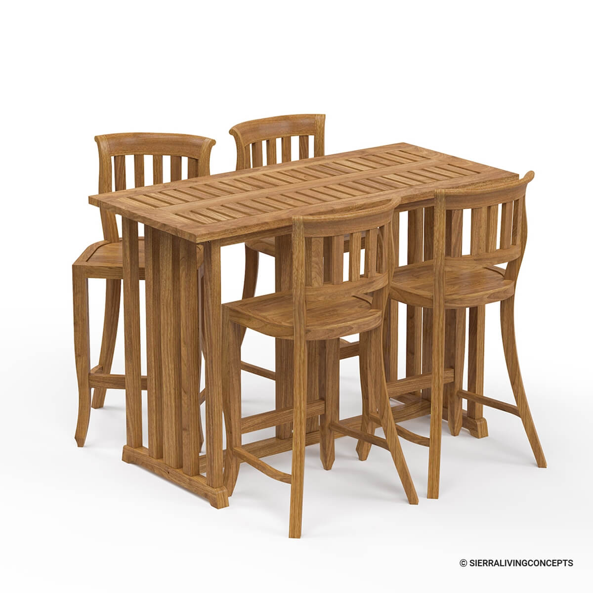 Your wait to create a dreamy outdoor oasis will finally come to an end with our Burano Teak Wood Outdoor Bar Table Chair Set. With this beautifully crafted outdoor set, you will unlock a world of fresh air, rustic aesthetics, and luxe design. Entirely handmade, this dining set features a rectangular bar table and a fine collection of stylish bar chairs.