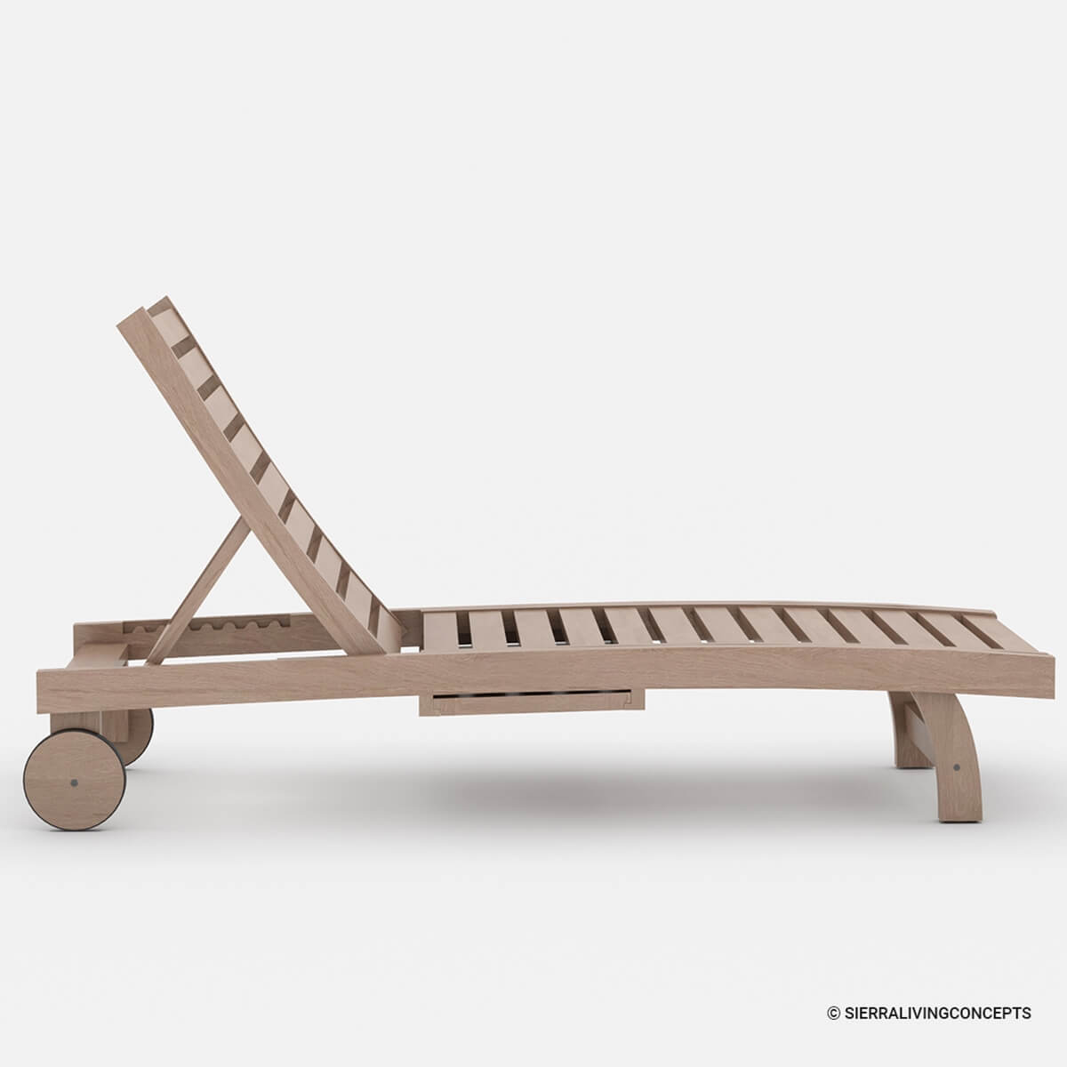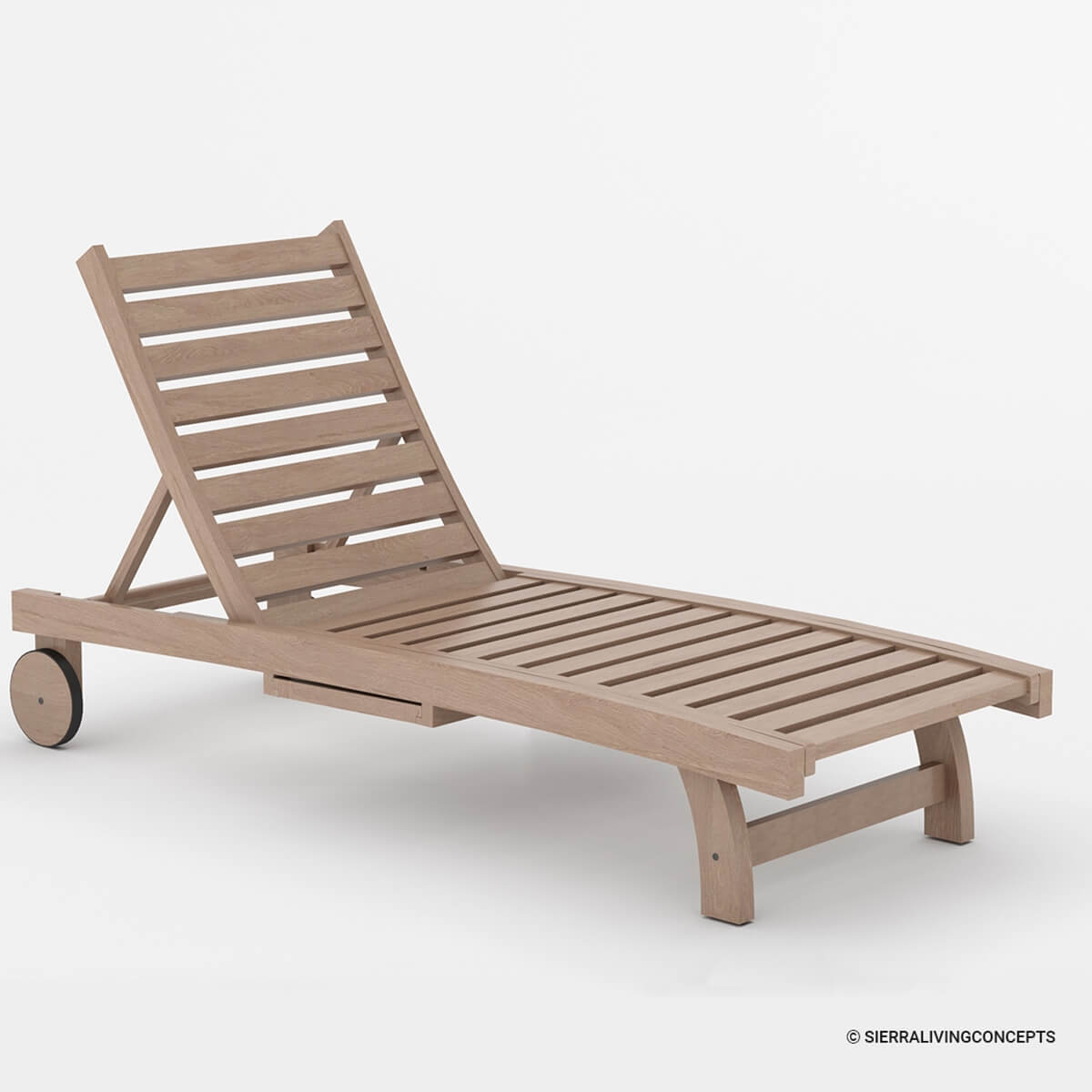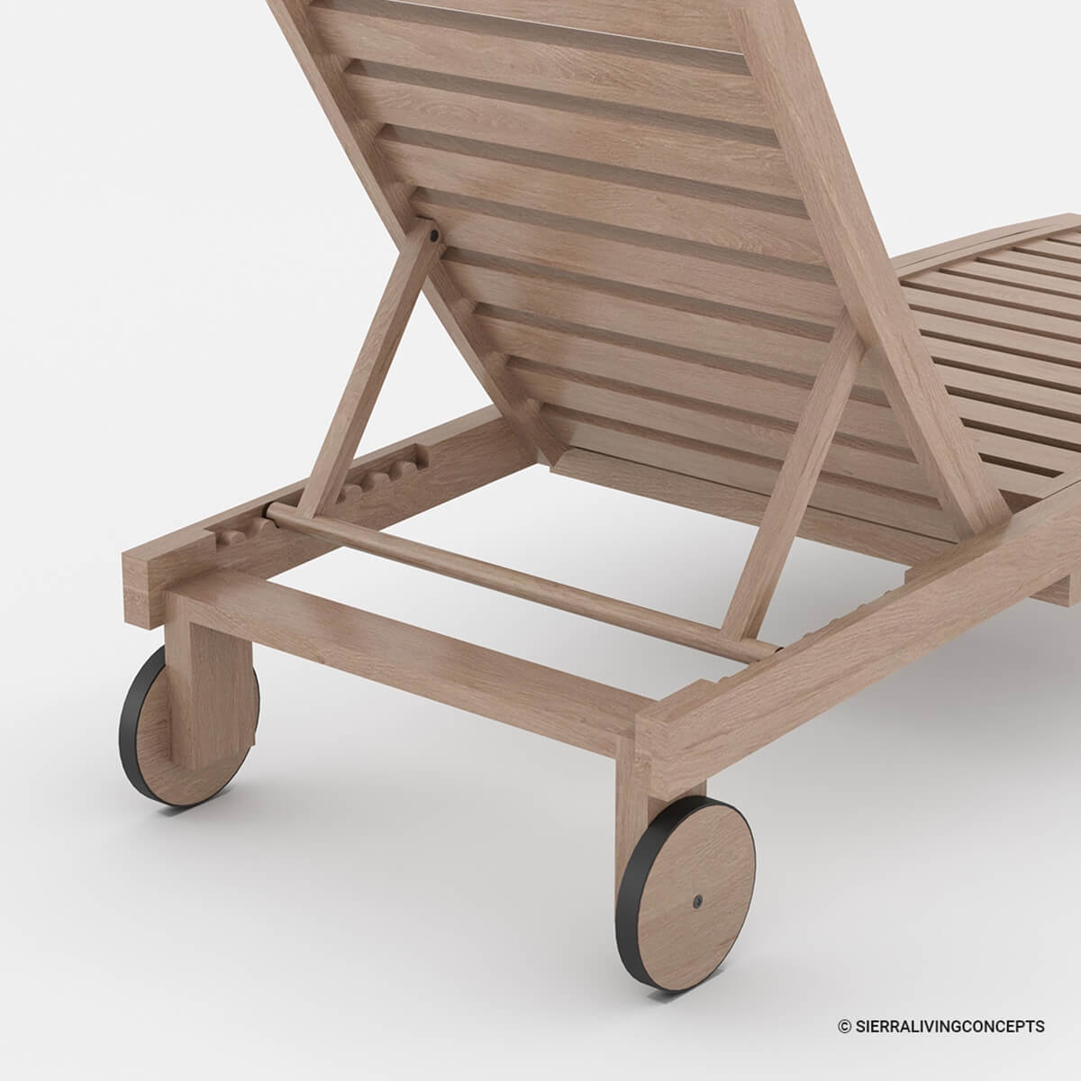 Enjoy a beautiful outdoor space with our Holtville Rustic Teak Patio Chaise Lounge Chair With Wheels and relax comfortably. This stylish chaise lounge chair with wheels is made from SVLK-certified Indonesian teak, has slatted wood details, and has wooden wheels for easy moving. It works wonderfully as a poolside chair, patio lounge, or wooden chaise lounge chair.