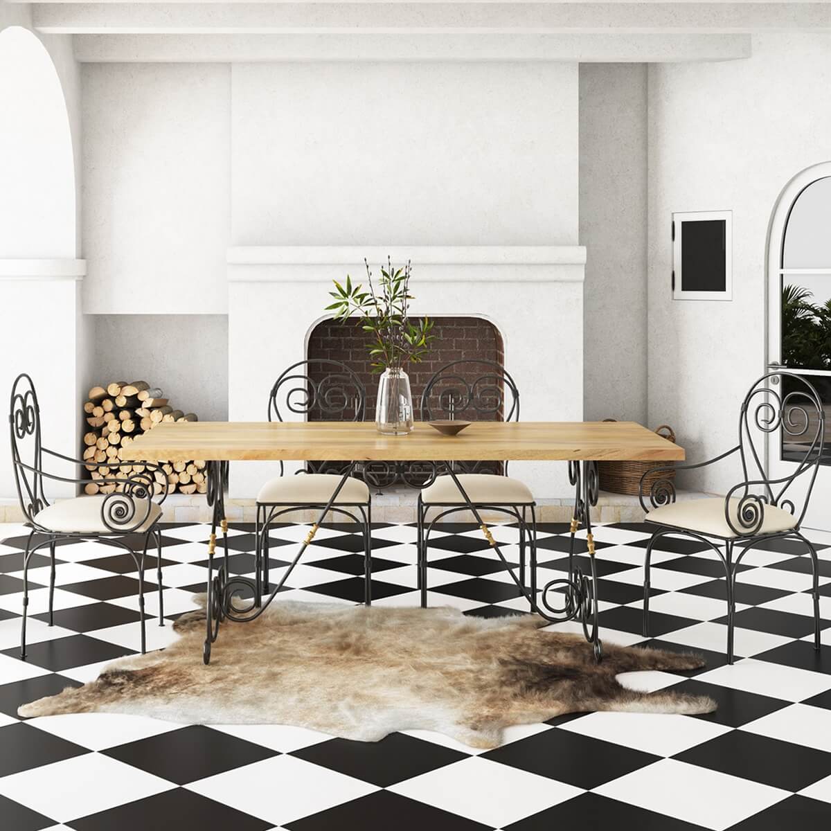 • Material: Solid wood and wrought iron