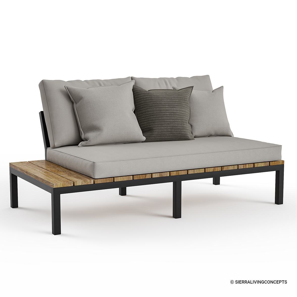 Entirely handcrafted from teak wood, this sectional sofa is designed to transform your outdoor living experience like never before. It offers the beauty of teak wood craftsmanship and boasts a stunning 2-tone appearance. The rich woodgrain patterns showcasing natural variations become the highlight of the slatted seat that exudes inviting vibes.