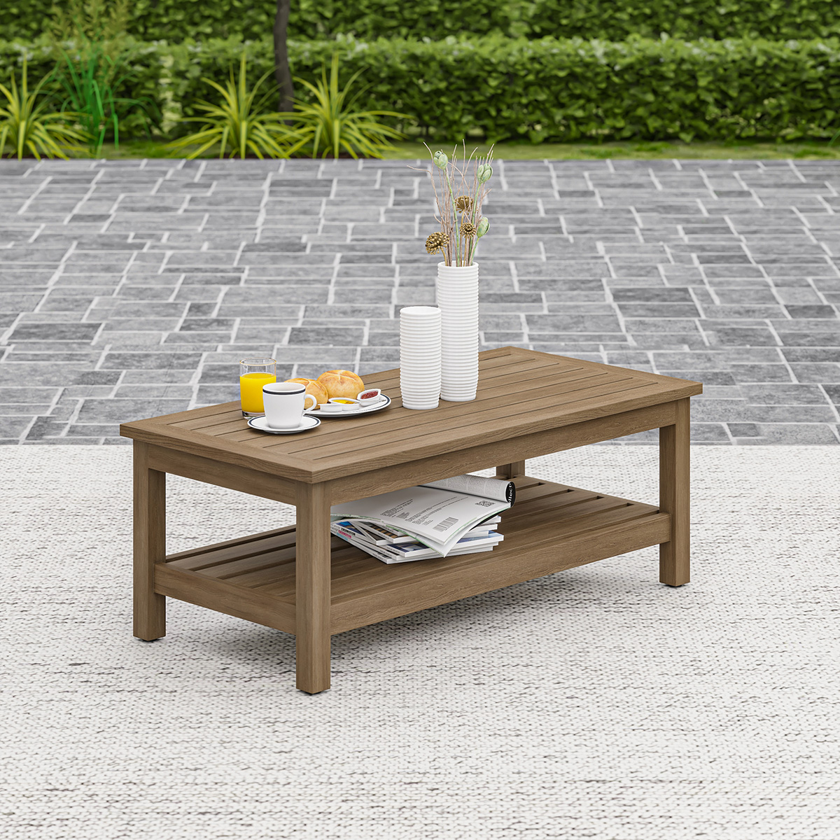 Rustic charm meets outdoor indulgence with our Amstetten Teak Patio Coffee Table. Entirely handcrafted from solid teak wood, this coffee table epitomizes the fusion of contemporary aesthetics and timeless craftsmanship, promising an outdoor experience that's as stylish as it is comfortable.