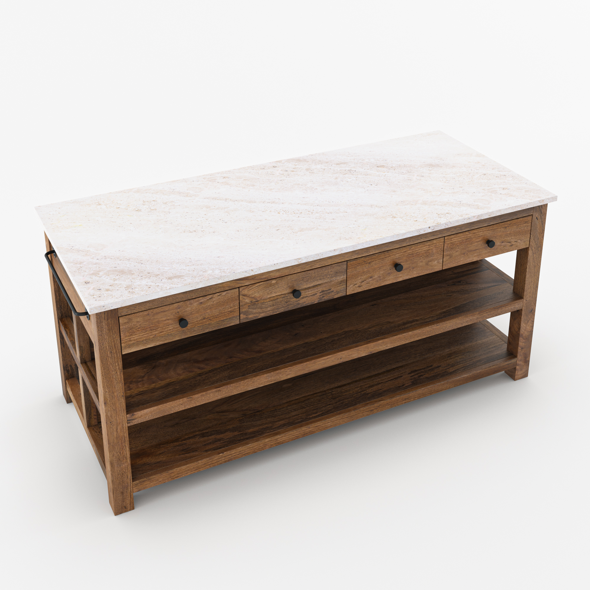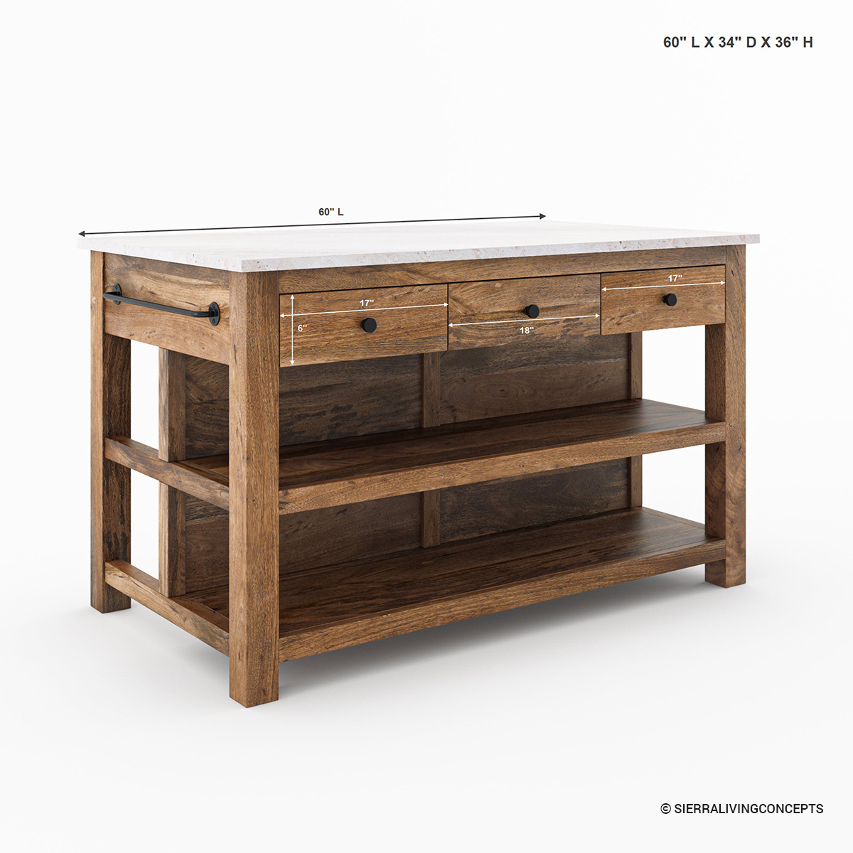 Molded from the finest solid wood, this marvel of craftsmanship is intricately designed to stand resilient against the relentless flow of time and the dynamic demands of daily culinary exploration. Intertwining the magic of rustic aesthetics with the sleek sophistication of rustic embrace, this rustic kitchen island shapeshifts into a bewitching tableau, bestowing your dining enclave with opulent allure and homely charisma. Thoughtfully constructed to blend beauty and purpose, this white marble top kitchen island boasts a visually captivating extended white marble top surface that enhances its allure while creating a luxurious setting for meal prep, serving, and shared dining moments.