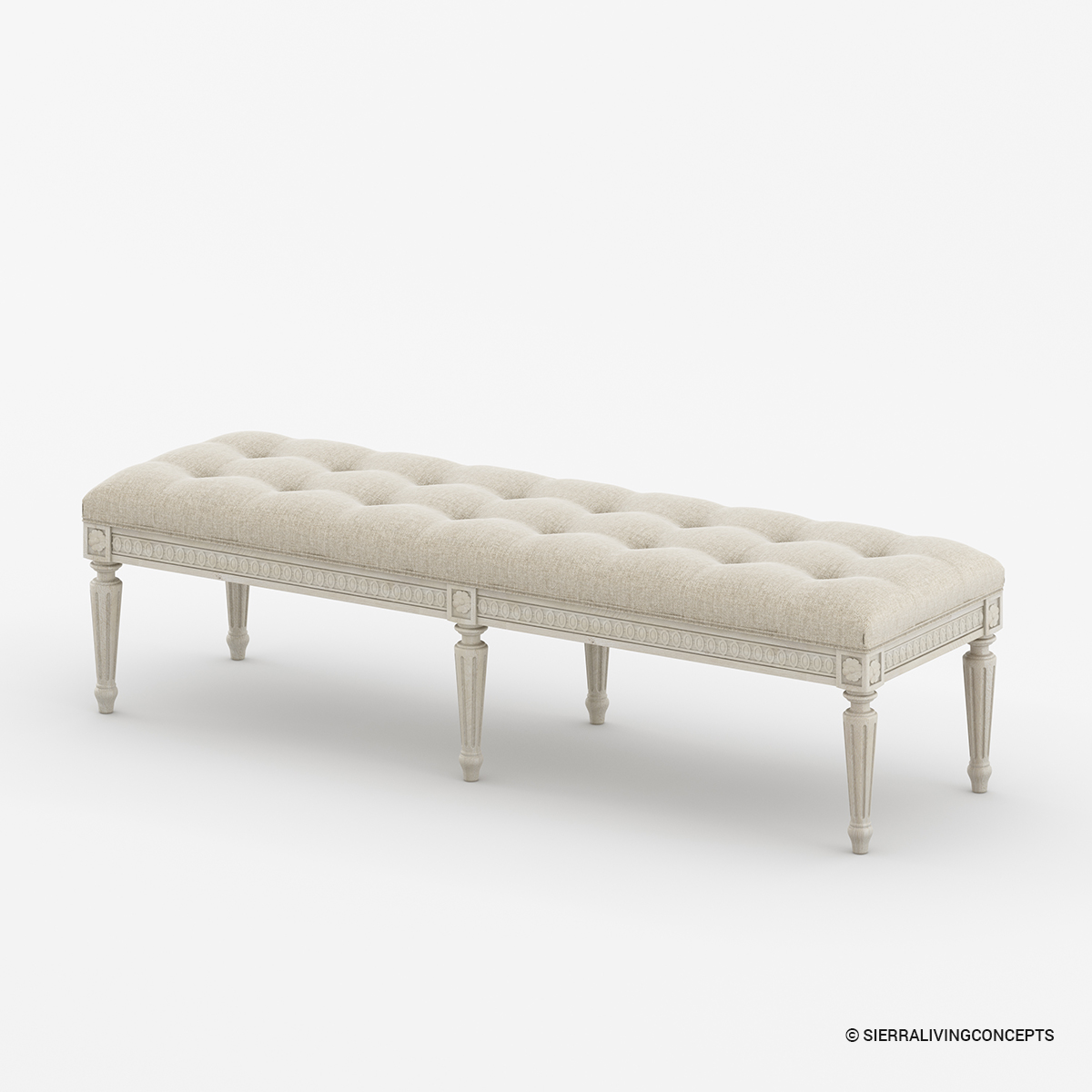 Imagine a picture-perfect alliance of pure white shades and top-notch solid wood weaving a tale of timeless elegance. Think of a stylish conductor directing a symphony, where the sophisticated tunes of French-country flair effortlessly blend with the down-to-earth melodies of rustic charm. Delicate and deliberate, the hand-carved features turn this upholstered bedroom bench into a living canvas, a testament to the fusion of aesthetic grace and ergonomic bliss. Sink into the embrace of a good read or bask in the company of loved ones as this French bench, your silent storyteller, weaves a narrative of relaxation and conviviality, echoing charm and allure in every moment.