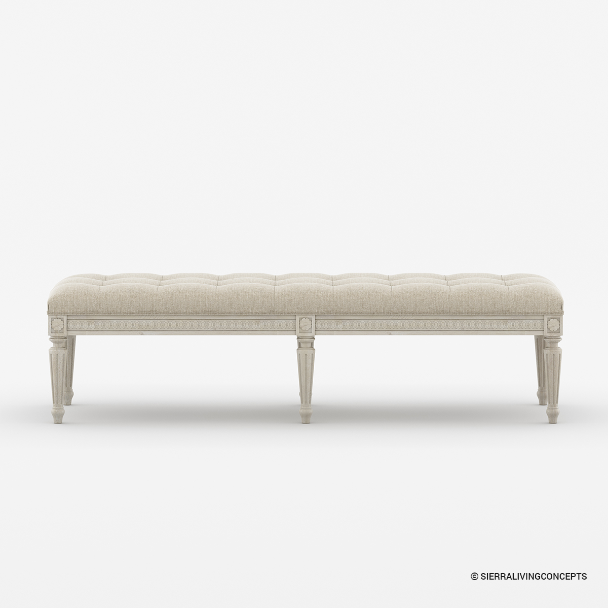 Pamper yourself in the lap of opulence with our lavish fabric upholstery, graced by a mesmerizing tufting pattern that not only captivates your visual senses but also beckons you to unwind in utter comfort. This generously sized rectangular upholstered bedroom bench is a functional and stylish addition to your bedroom. Standing proudly on six finely carved pillar legs, it is a visual symphony that seamlessly integrated into our Pittsburg Carved Solid Wood 4 Piece Storage Bedroom Set, weaving together an artistry of refinement.