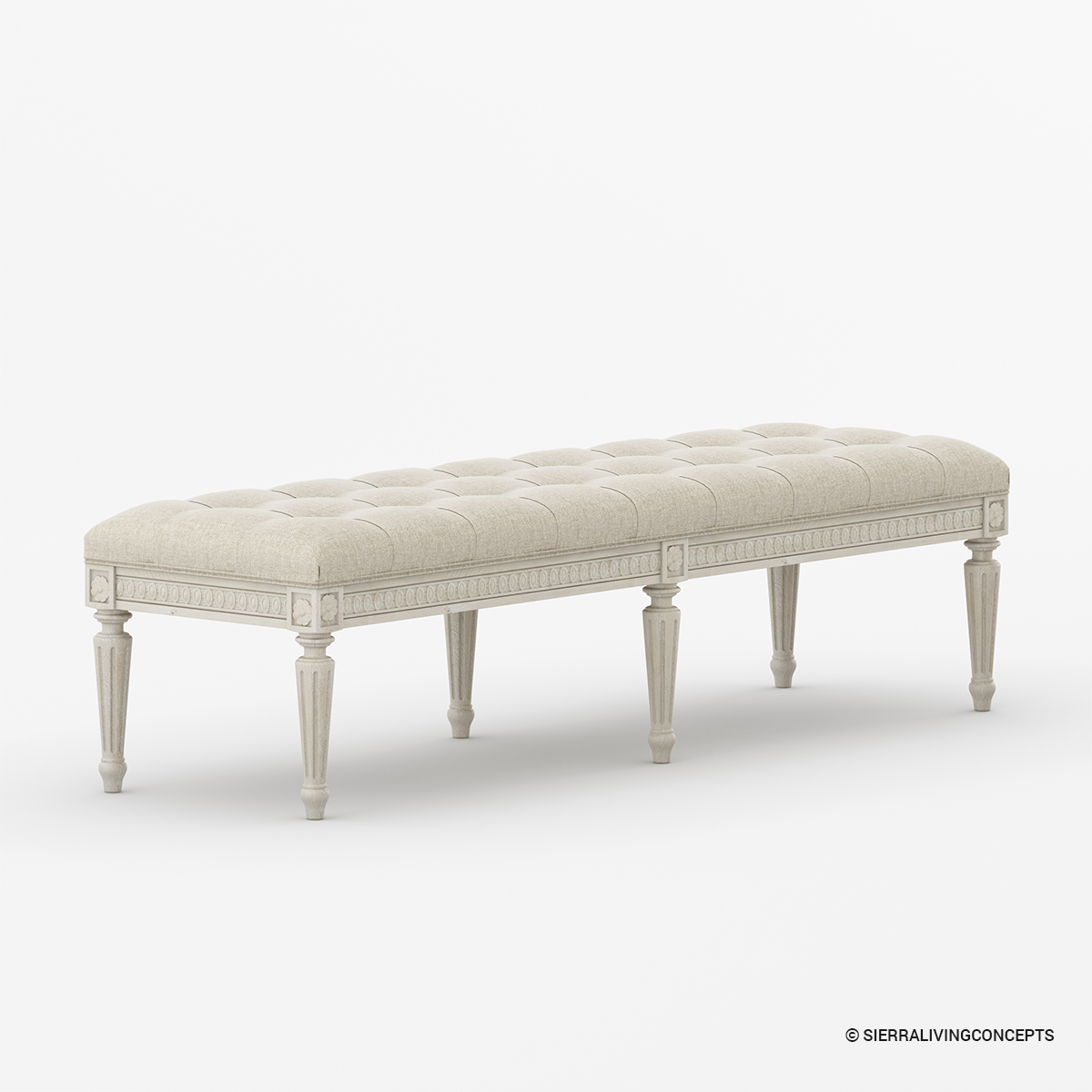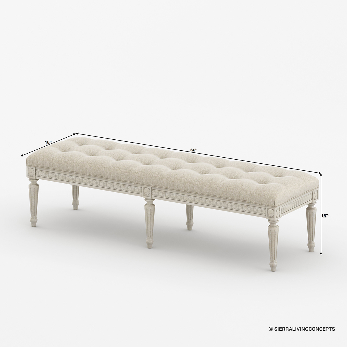 • Intricately hand carved bench apron