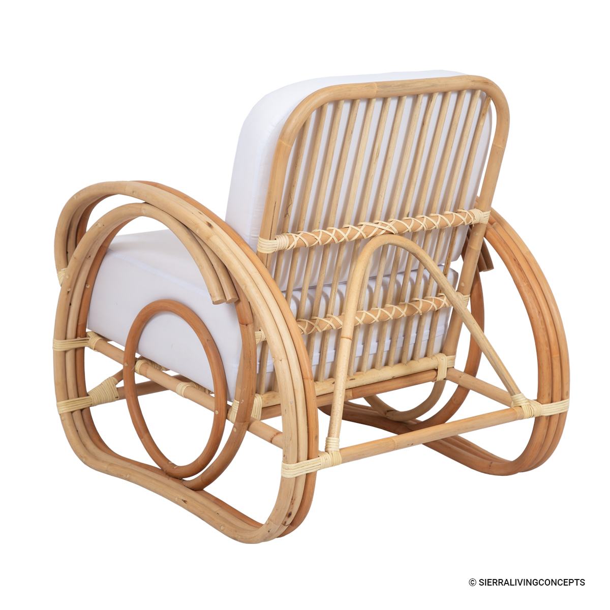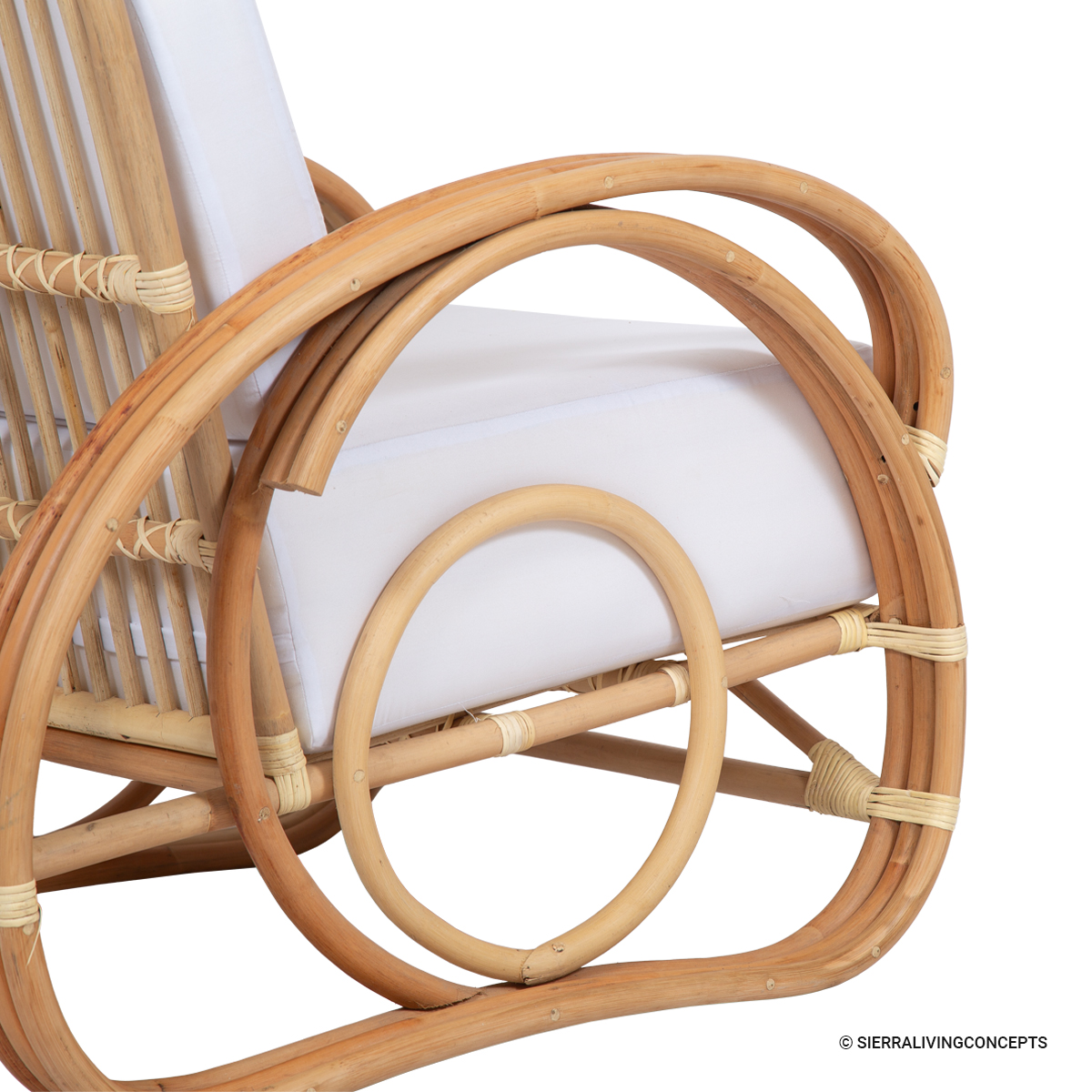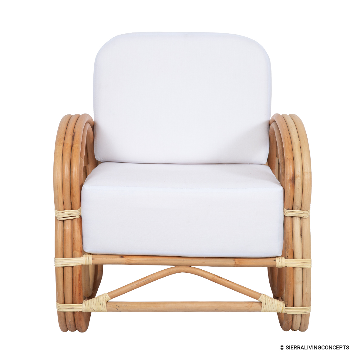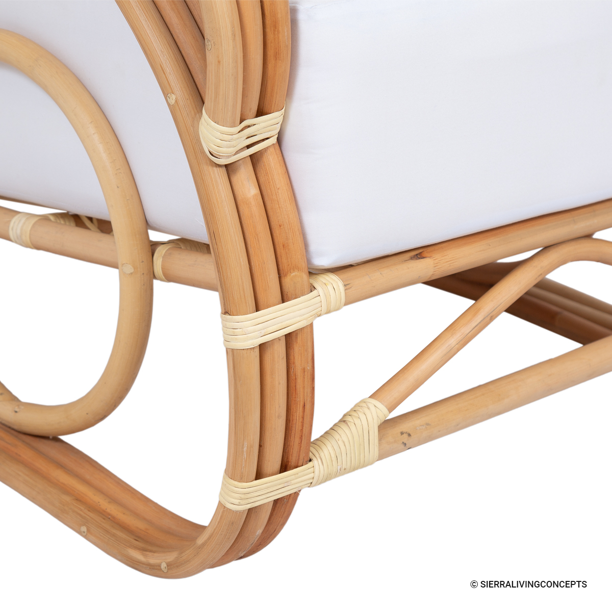 Slouch into Bohemian comfort embraced by our Kalama Boho Rattan Armchair with Cushion. The light silhouette carved from rattan and covered with white cotton fabric speaks of that air of overlooking, perfectly angled either in corners or on sun-kissed verandas.