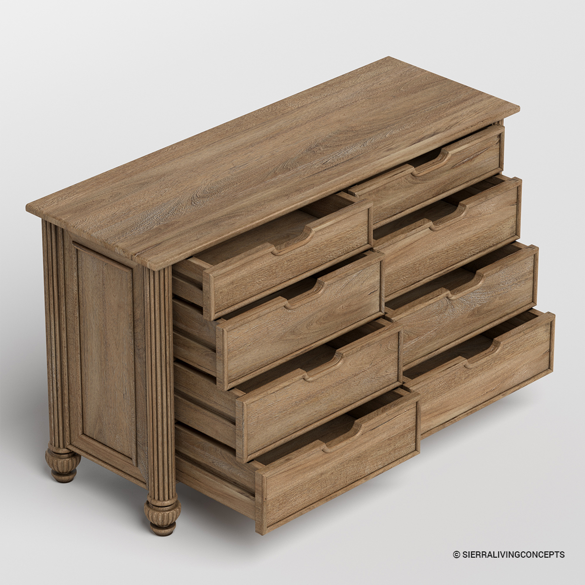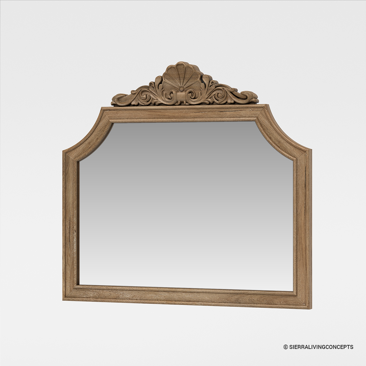 • The 8-drawer dresser is perfectly complemented by the arched, hand-carved mirror frame to complete the entire bedroom set with symmetry, functionality, and artisanal appeal.