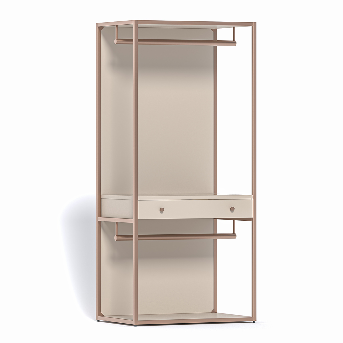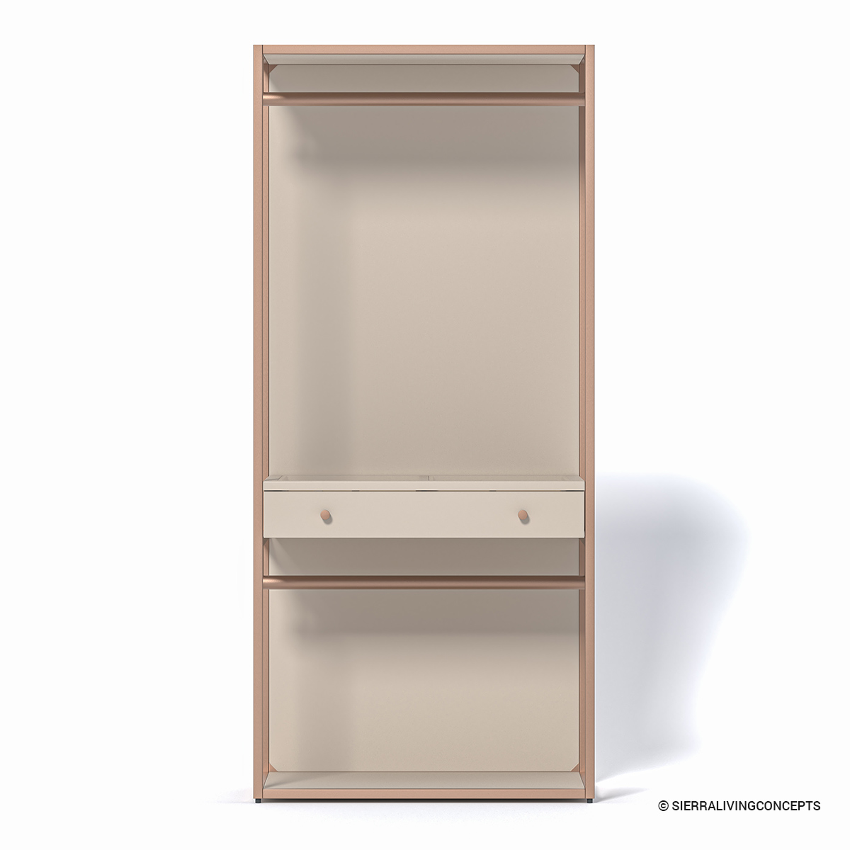 • Constructed from solid wood, this closet system exemplifies the contemporary flair while being sleek and robust.