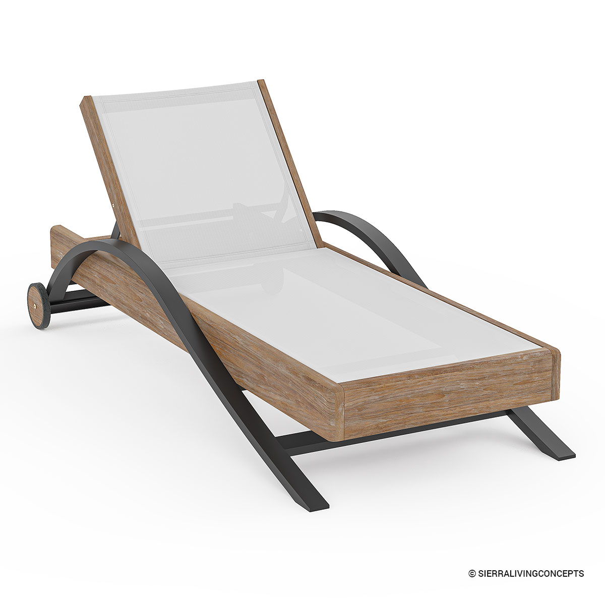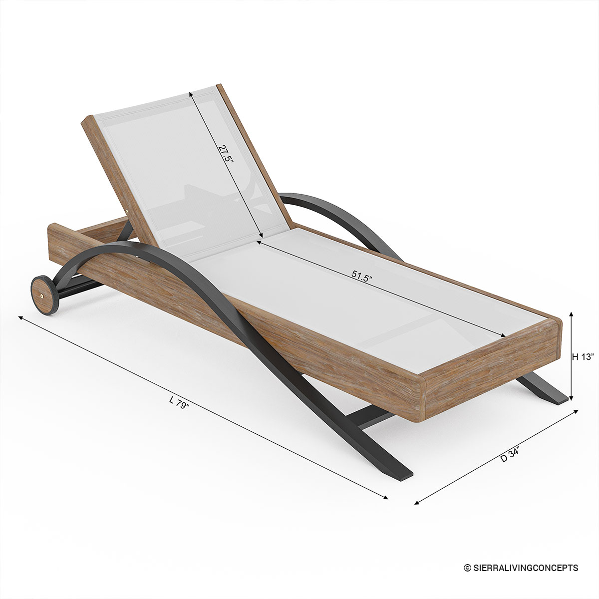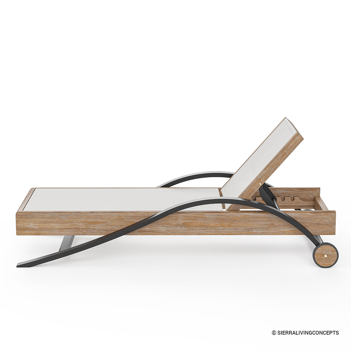 Soak up the sun in ultimate style with our Terrace Black Modern Outdoor Chaise Lounge for Poolside. This teak chaise lounge masterfully blends with a rich wood frame with a sleek, curved metal base for a striking modern look. With its multi-position reclining back and convenient wheels, it's the perfect fusion of sophisticated design and luxurious comfort.