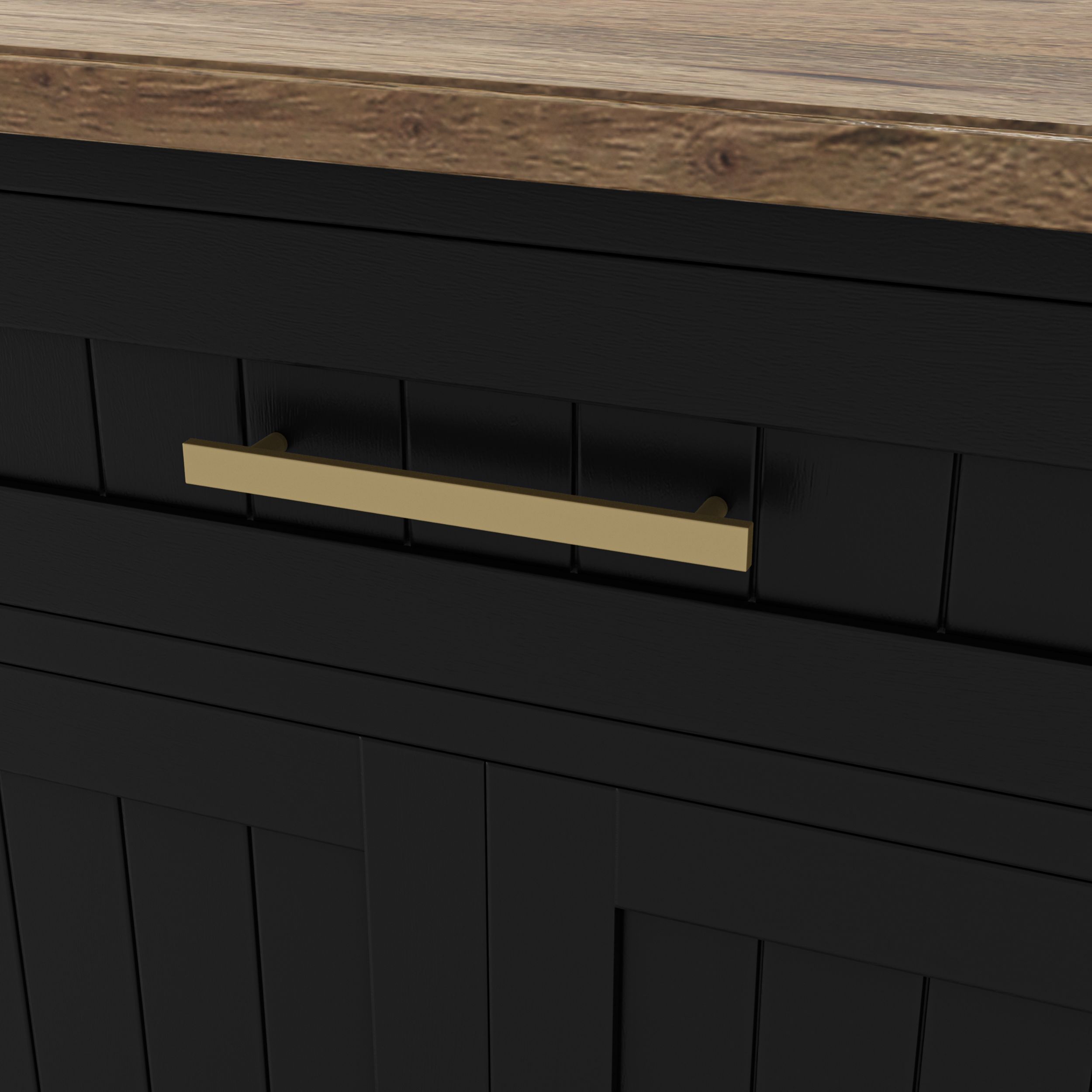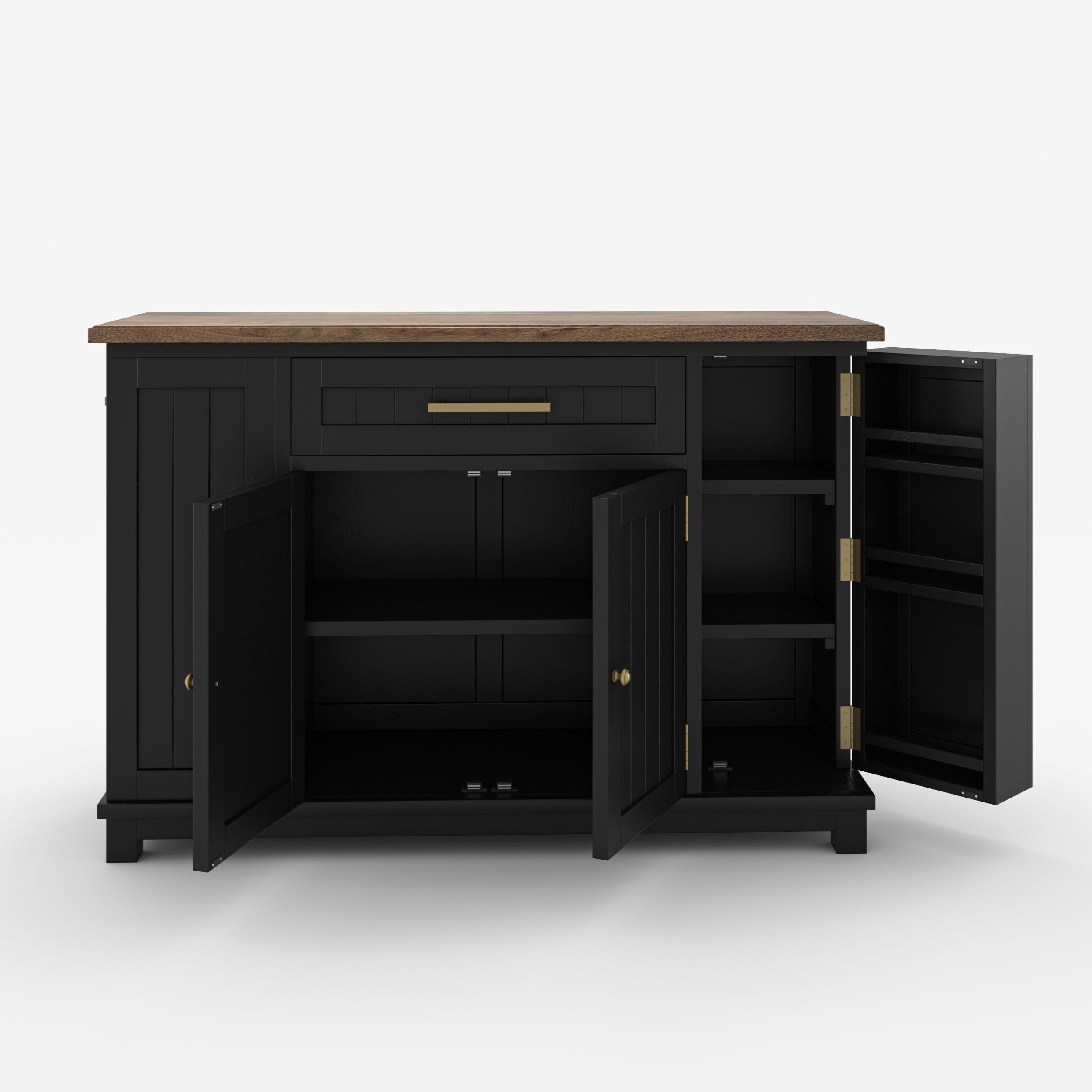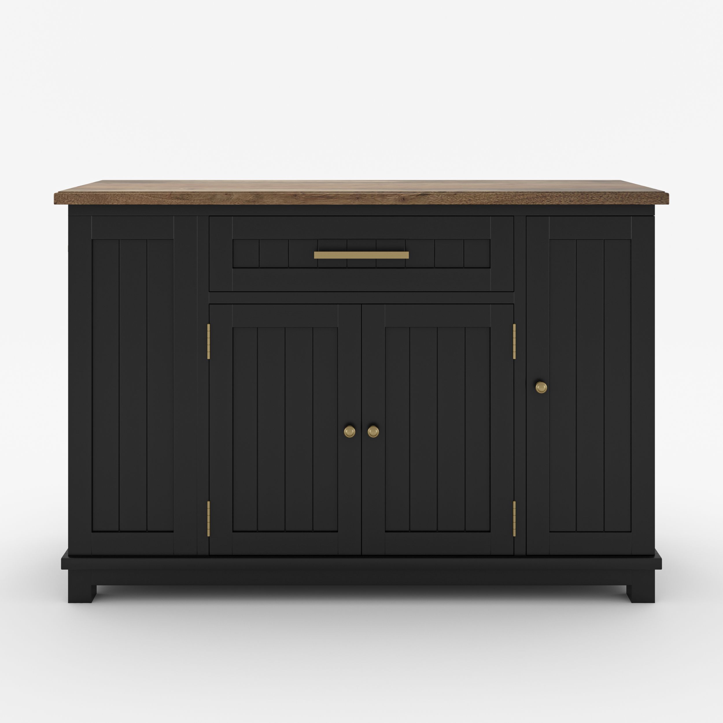 Complement your favorite kitchen pieces with our Renie Modern Black Kitchen Buffet Island Cabinet, which melds modern farmhouse charm with clever storage. With its sleek black beadboard panels, warm natural wood top, and versatile customizable features, this island base cabinet adds both elegance and everyday practicality to your space.