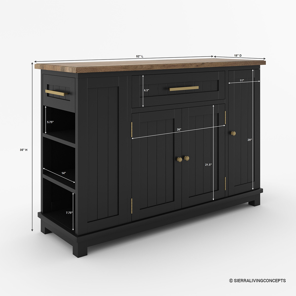 • This kitchen buffet island cabinet is crafted from solid wood, delivering lasting durability and modern farmhouse charm perfect for everyday kitchen use.