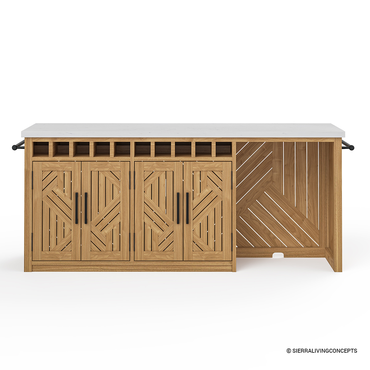 • Crafted from certified A-grade Indonesian teak, this outdoor kitchen island boasts expert countryside craftsmanship and features a durable, elegant marble countertop for a premium outdoor kitchen bar island feel.