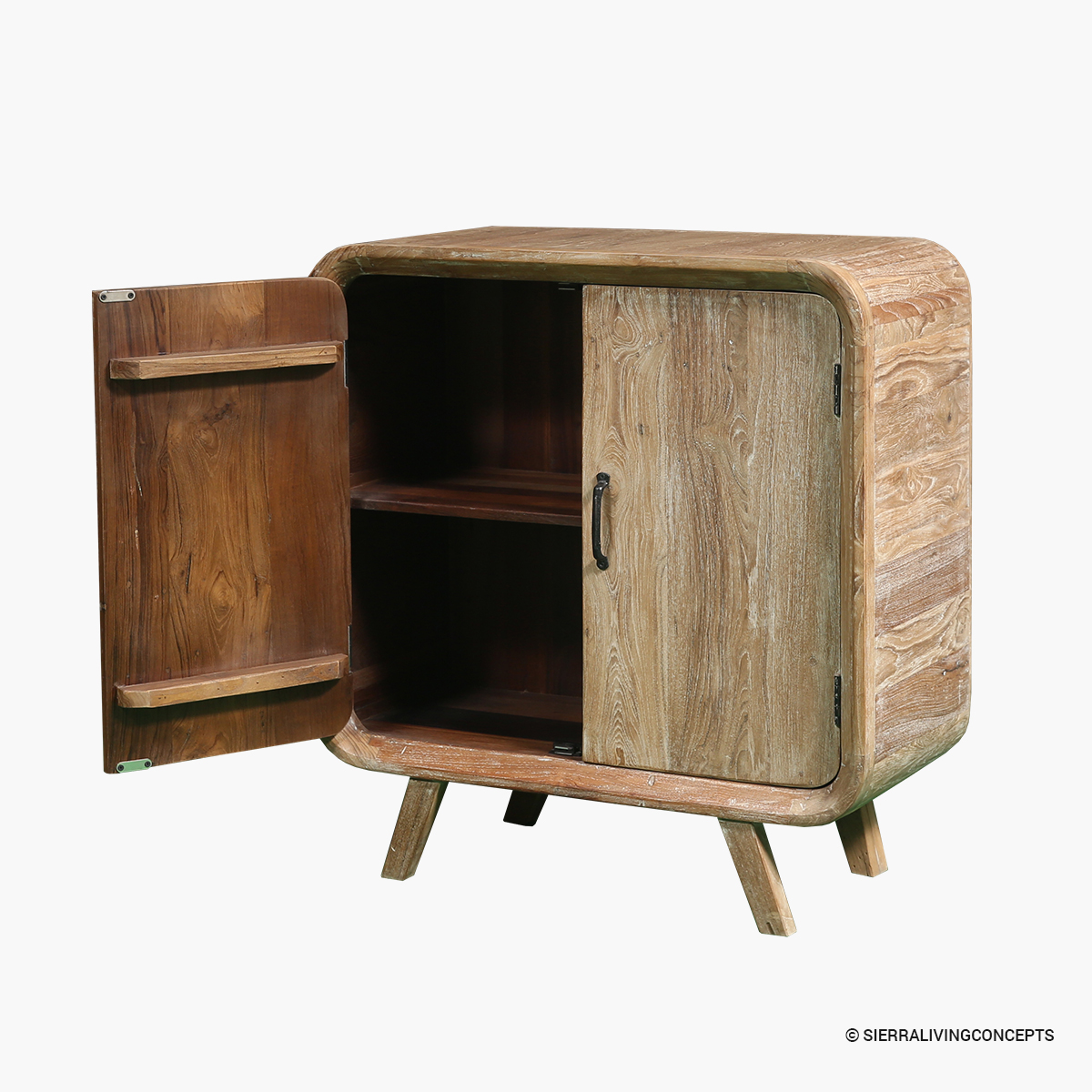 • With a nod to mid-century modern design, this accent storage cabinet boasts rounded edges, sturdy solid wood construction, and a classic profile for long-lasting strength and appeal.