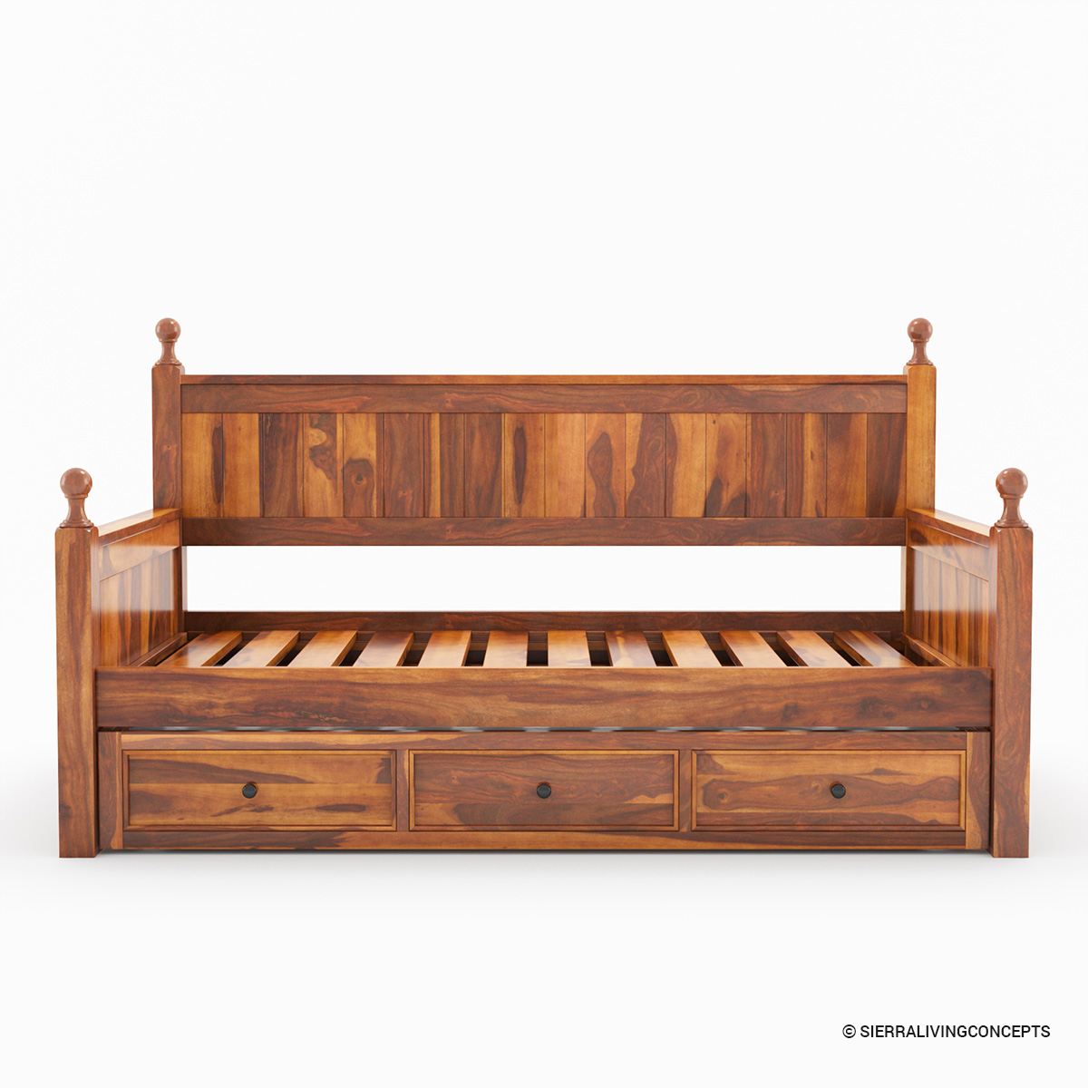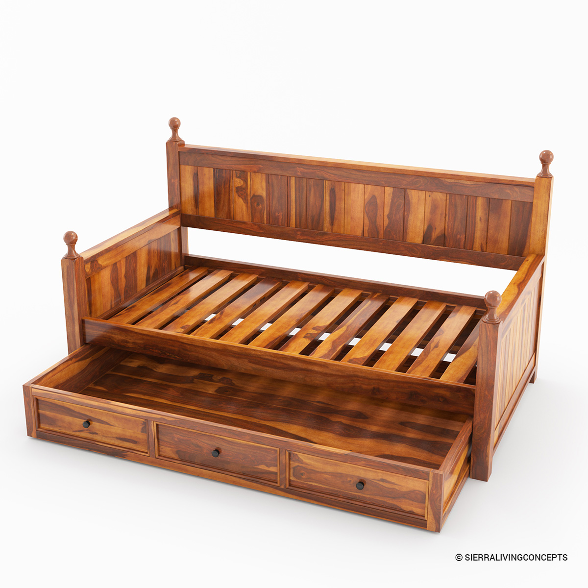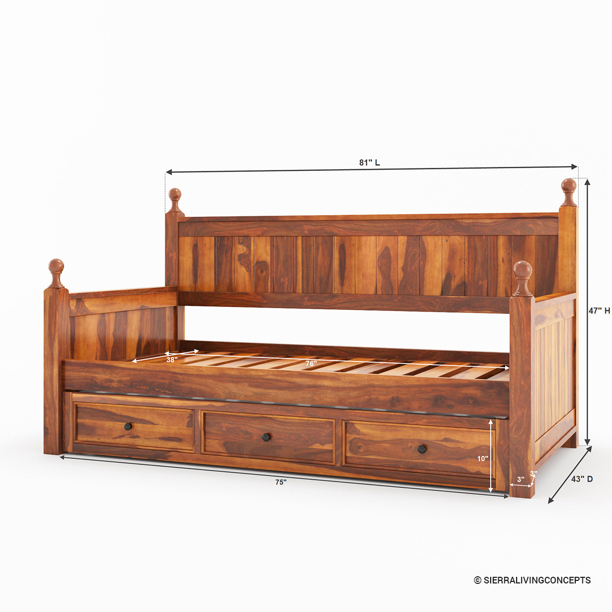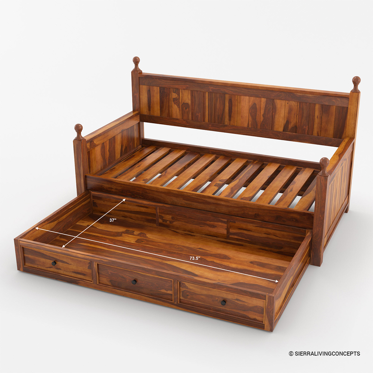 • Crafted in a charming Modern Farmhouse style, this daybed with trundle and storage is fully handcrafted from premium solid wood, offering rustic beauty, strength, and lasting durability.