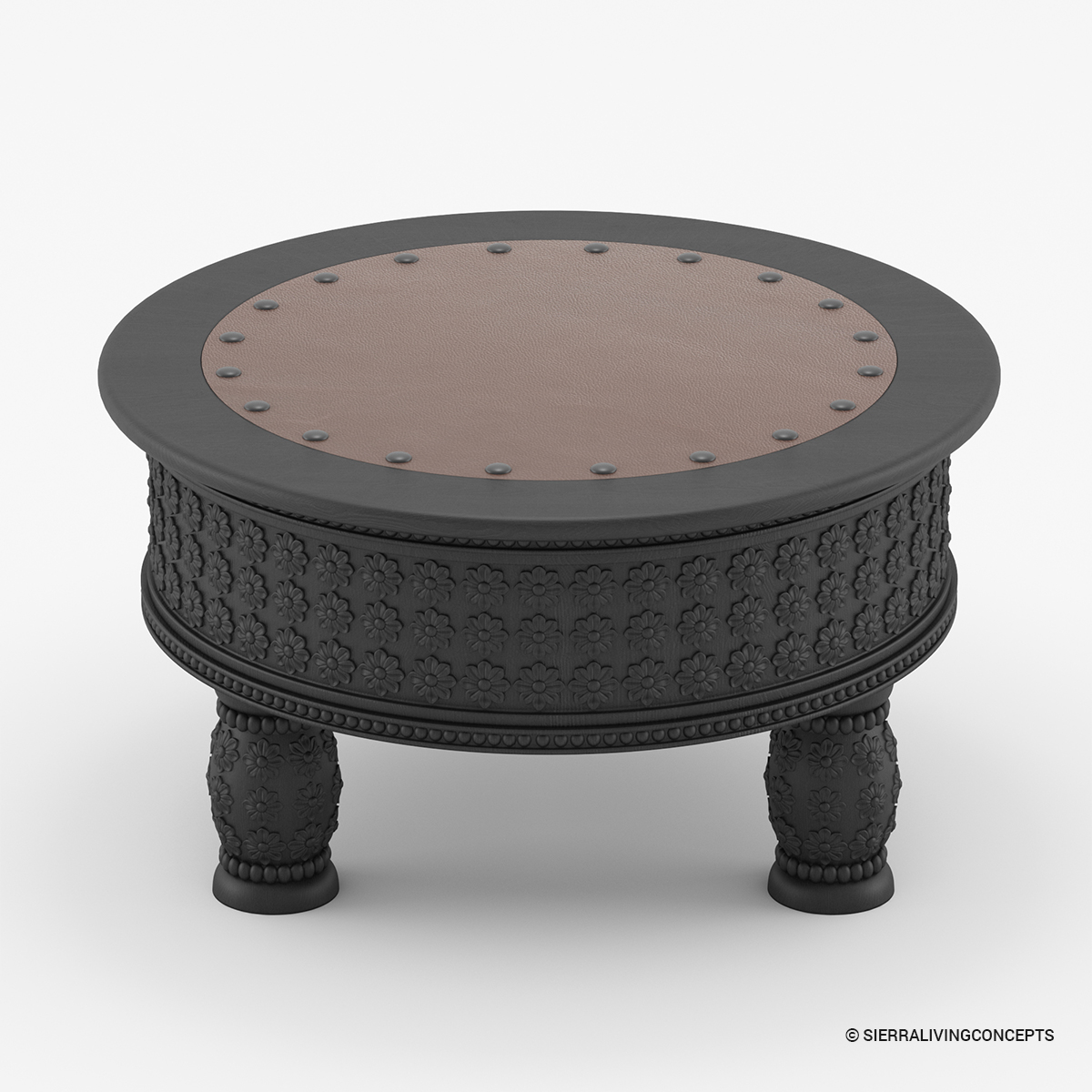 • Sturdy base with a retro feel of elephant legs, the leather top round coffee table's classic carvings adds even more depth to its visual landscape, so you know it is not lost in your living area.