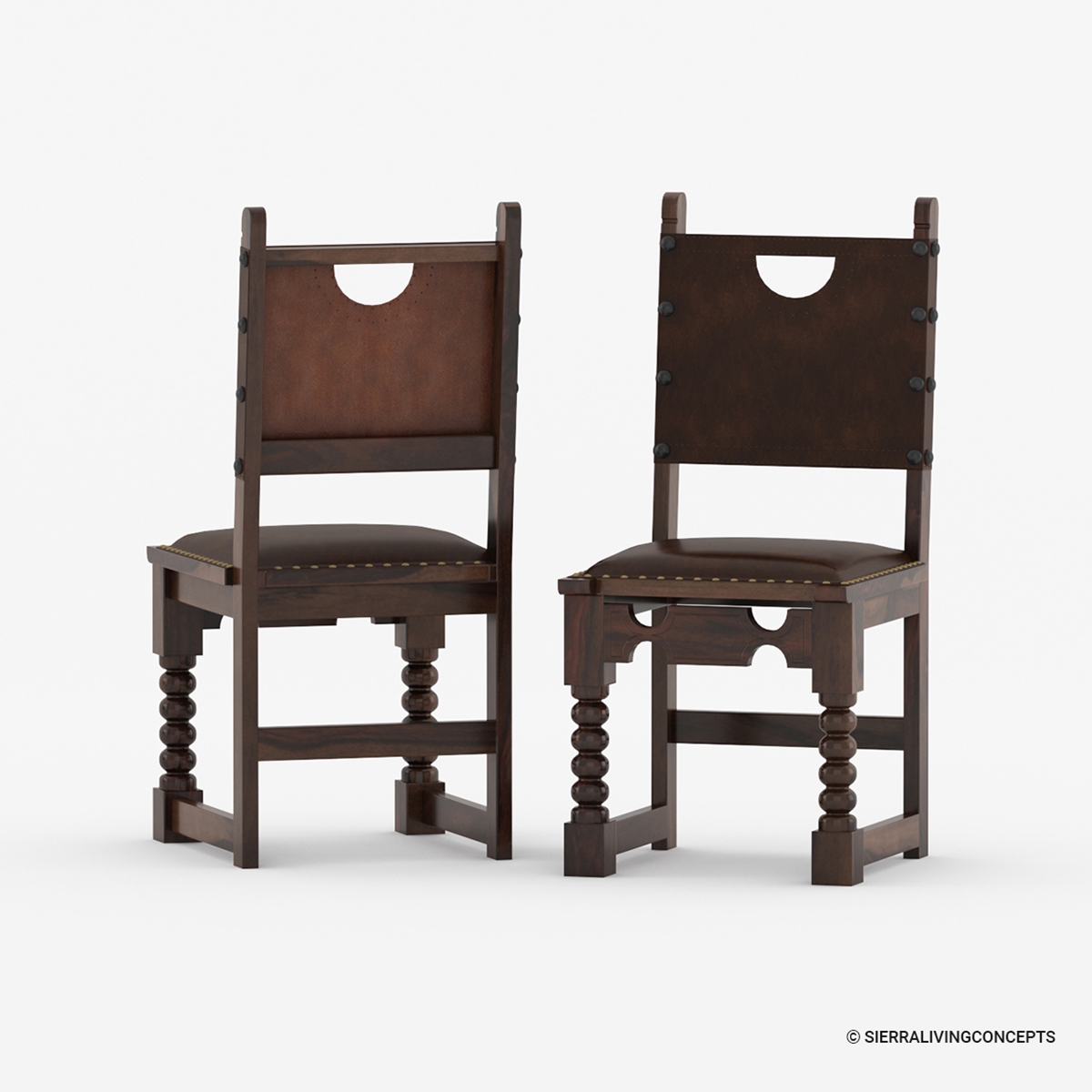 Similarly, the dining chairs are expertly built to ensure maximum comfort and relaxation while you cherish your dinners and engage in long conversations with your friends and family. These modern chairs feature leather backs and seats, side stretchers, and handholds for ease of use. Standing on country column legs, these chairs reflect the ace craftsmanship of our brilliant artisans and the rich rustic aesthetics that makes them stand out.