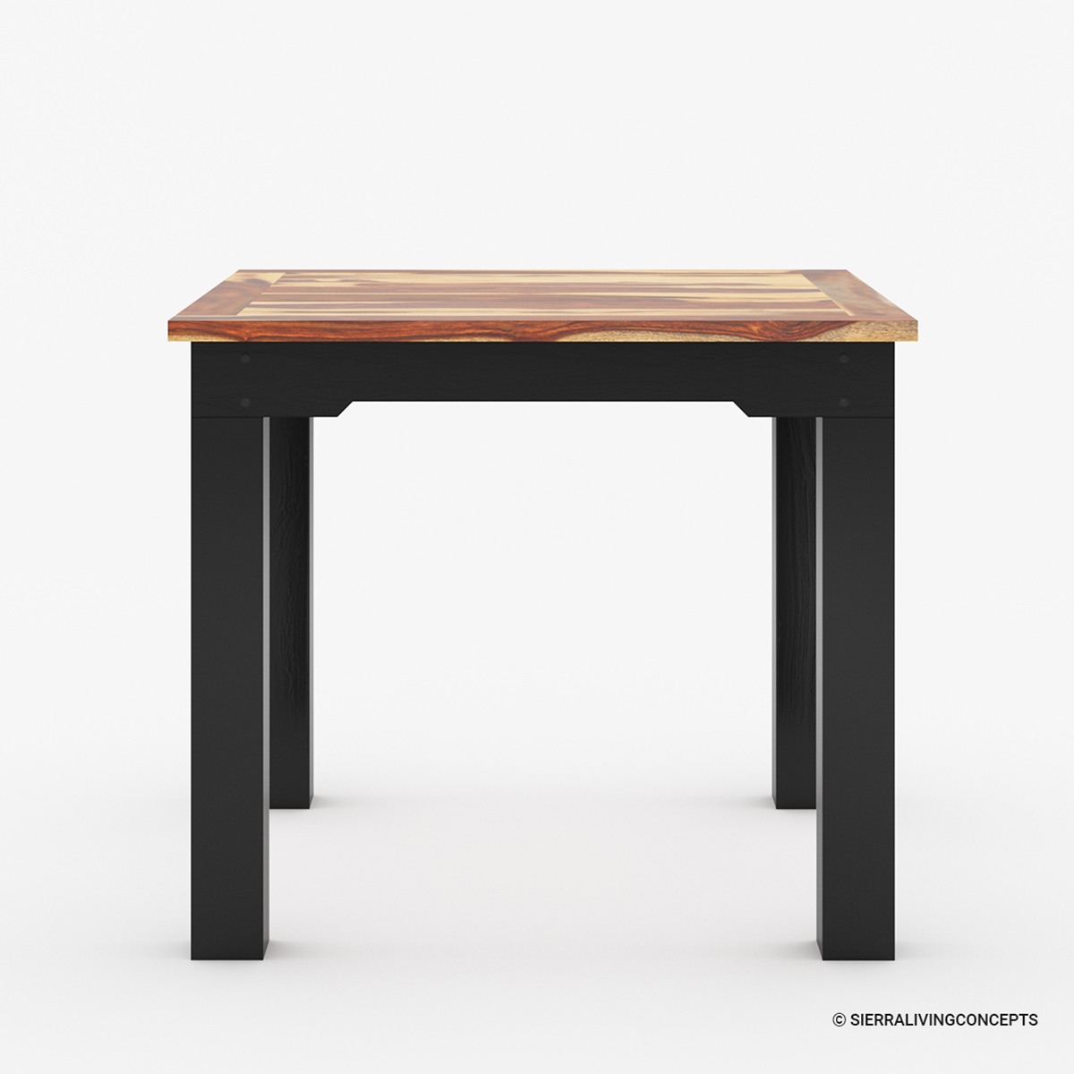 Entirely handcrafted from solid wood, this kitchen table boasts a dual-tone outlook that brings a nice contrast with its vibrant rustic top and dark finished base. This square table comfortably accommodates four people and is ideal for small dining areas. This table is not only functional but also a work of art that will earn a lot of appreciation from your guests.