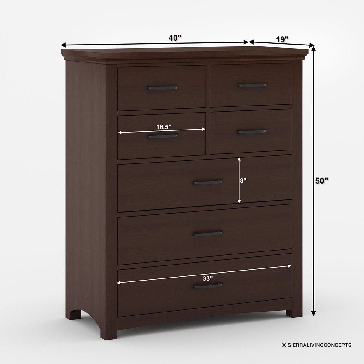 Dressers are a unique and essential part of every bedroom interior design. Not only are they a necessary vanity-element, but they’re also used for storing some daily necessities. You can spice up your bedroom ambiance and add a little extra storage at the same time by opting for our Vindemia Solid Mahogany Wood Tall Bedroom Dresser Chest With 7 Drawers.