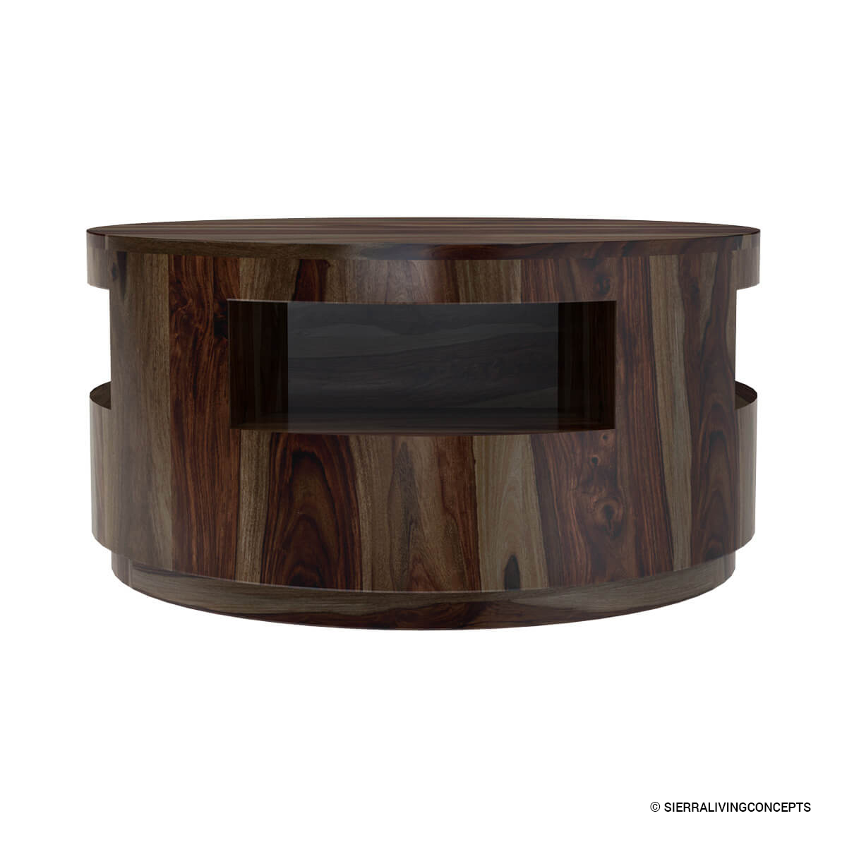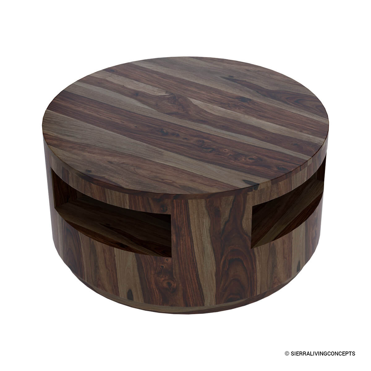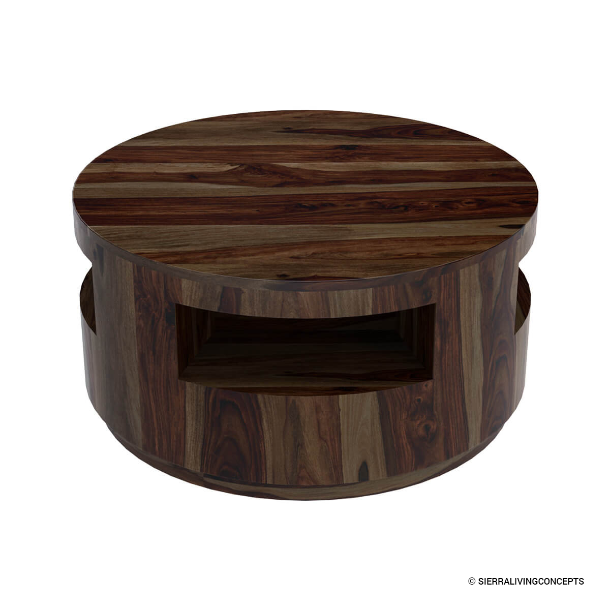 Sleek sophistication and unfettered grace collide beautifully in the design of our Ladonia Solid Wood 36 Inch Round Coffee Table With Shelves.