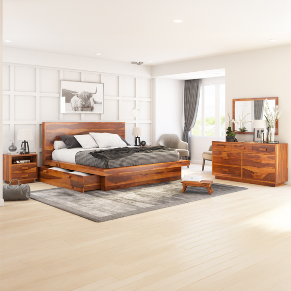 Shop solid wood furniture crafted by skilled artisans using premium hardwoods, including acacia, mango, mahogany, and teak. Each piece showcases natural beauty with unique grain patterns that enhance the character of your home. We guarantee high quality in our solid wood furniture. We offer customization options and free shipping on our products.